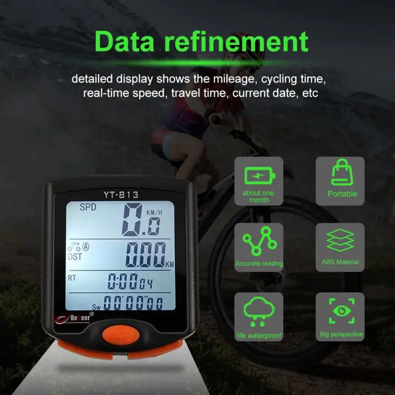 Триметр BOGEER YT-813 для горного велосипеда, спидометр, кабель для езды, кодовый стол, светящийся тахометр, проводной, беспроводной