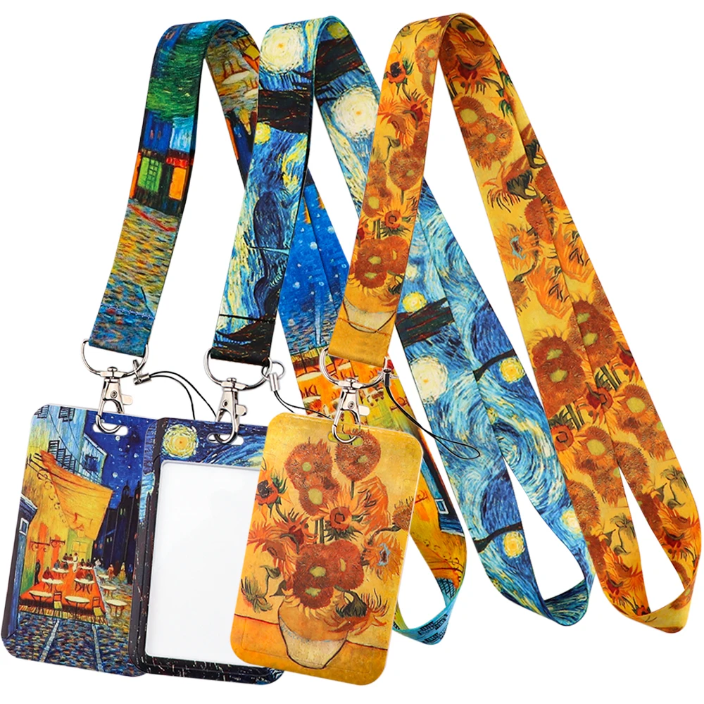 Брелок для ключей с картиной Ван Гога LB2784, шейный ремешок с маслом для ключей, ID-карт, ремешок для сотового телефона в спортзале, USB-держатель, художественные аксессуары