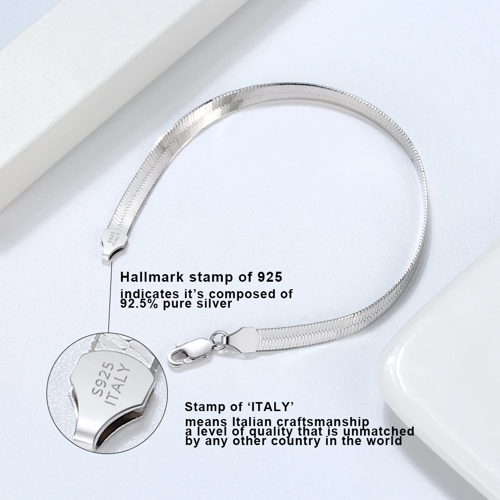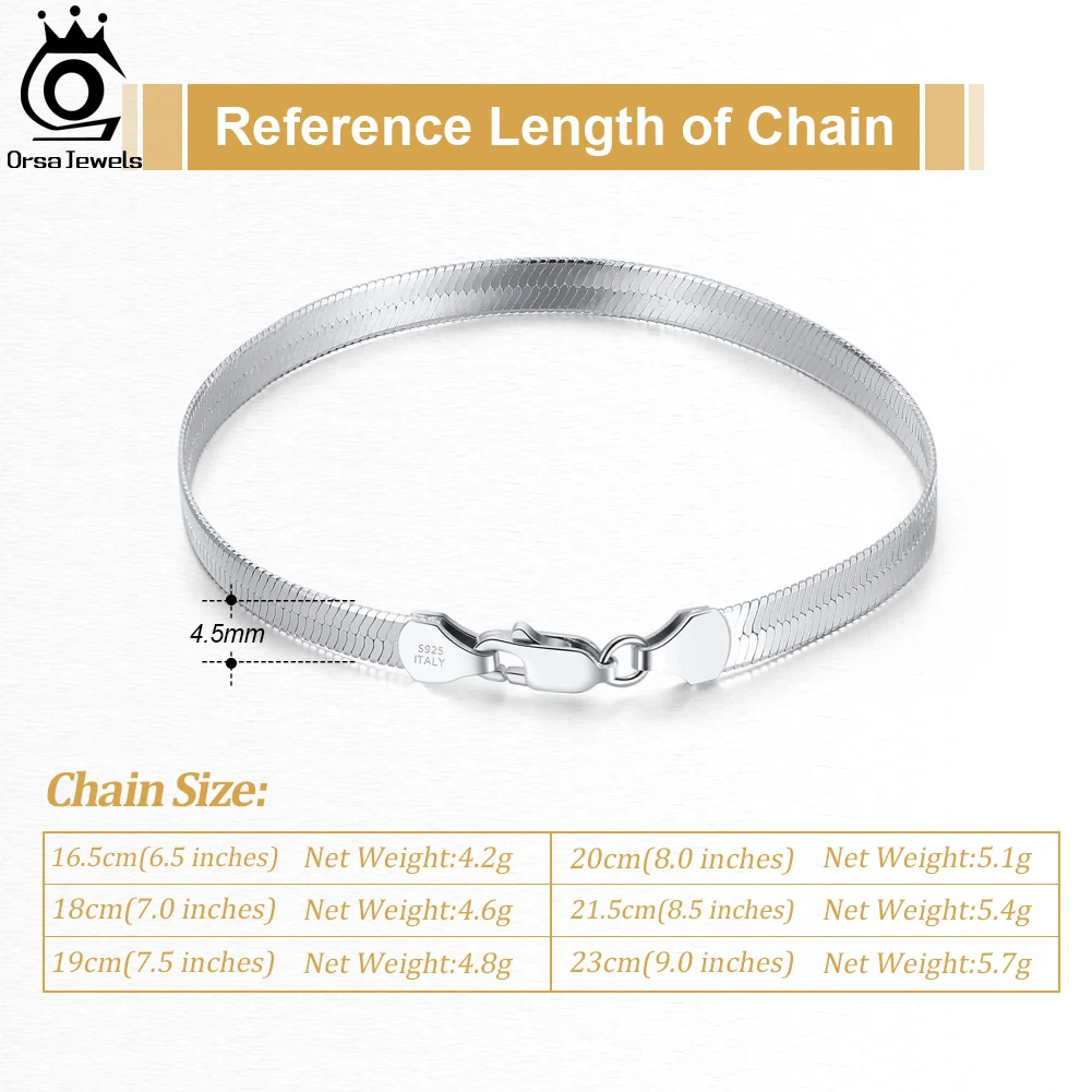 ORSA JEWELS 925 стерлингового серебра 4,5 мм ручной работы в итальянском стиле; Праздничная обувь гибкий плоский с узором «елочка» браслет для мужчин и женщин ювелирные изделия SB107