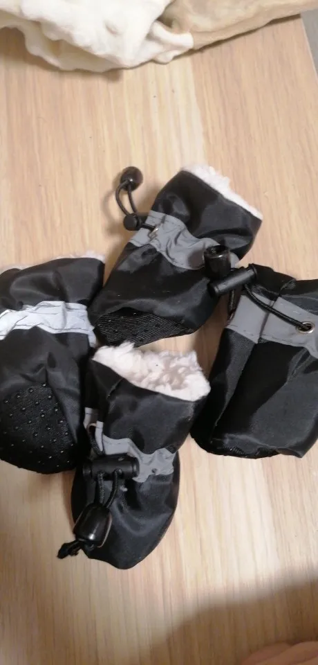Ботинки точь в точь как в описании. Меховушка есть только по бокам, на самой подошве нет. На трёх месячного шпица подошли хорошо. Заказ пришёл быстро. За девять дней.