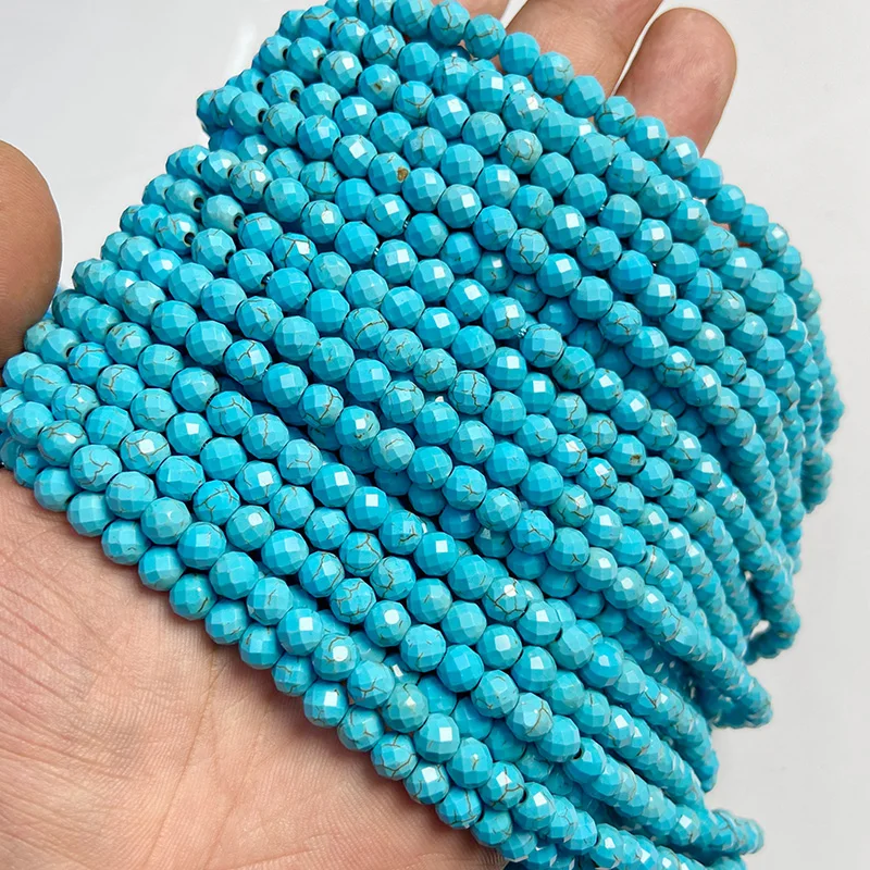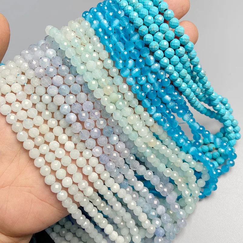 6 мм круглые бусины из натурального камня синие граненые бирюзовые аквамариновые бусины для самостоятельного изготовления ювелирных изделий Браслеты Ручной Работы