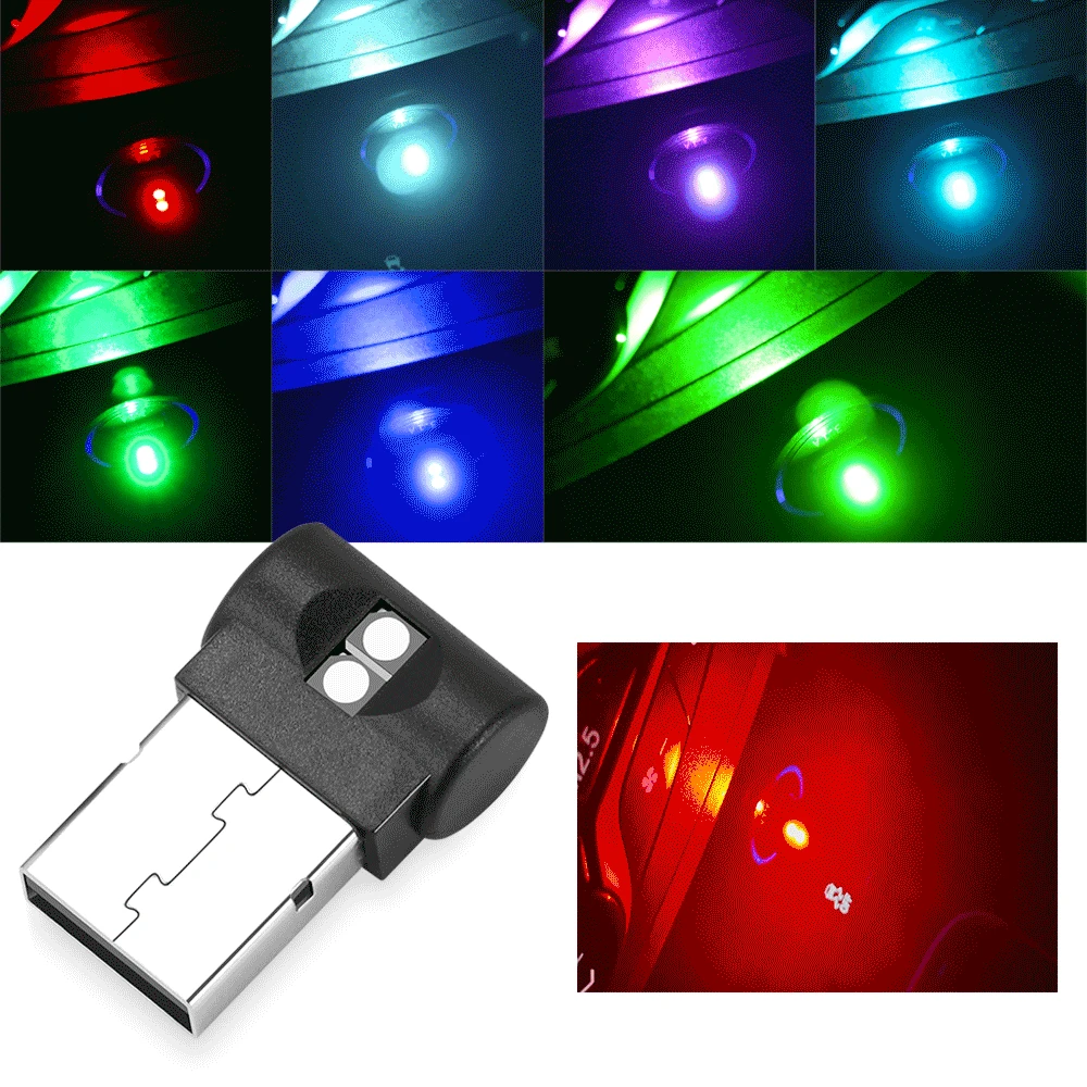 1 шт. USB СВЕТОДИОДНЫЙ Красочный светильник для салона автомобиля а...