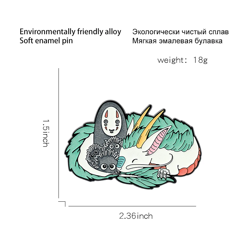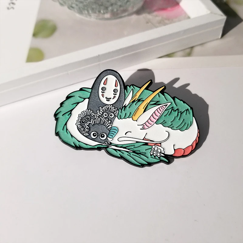 Светящиеся эмалевые булавки Haku с угольным духом, коллекция героев мультфильмов, коллекция героев аниме, милый значок на воротник, ювелирные изделия, подарок для детей