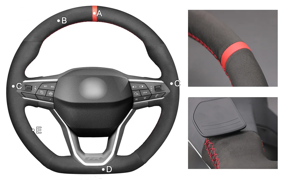 Сшитый вручную черный замшевый красный маркер фотография для Seat Leon Ateca Tarraco Cupra Leon 2020-2021