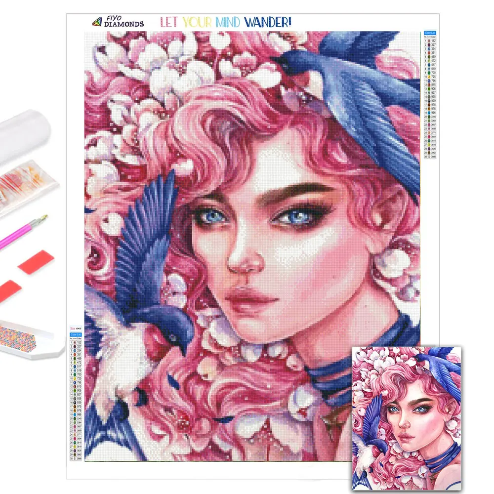Алмазная 5D картина сделай сам, мозаика с изображением девушки и цв...