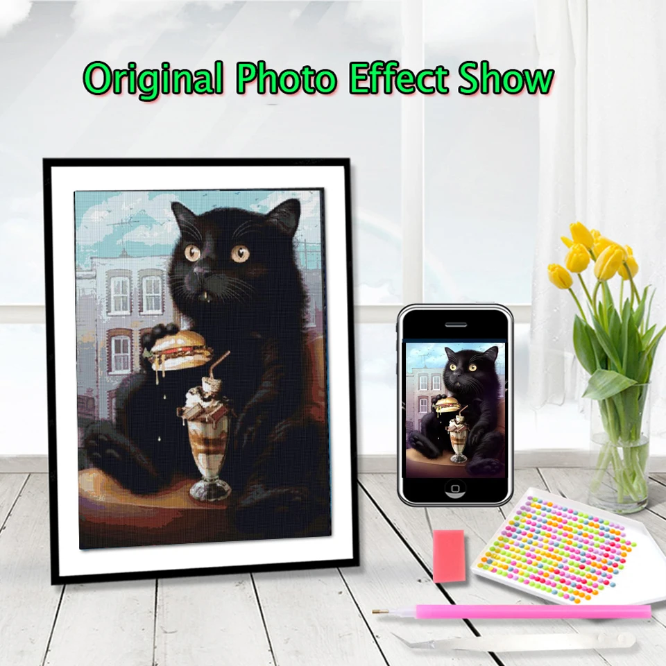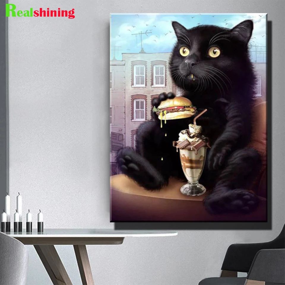 Алмазная живопись кот едает гамбургеров, алмазная вышивка 5D, мозаика своими руками, животное, 3d картина стразы, наборы для вышивки крестиком J216