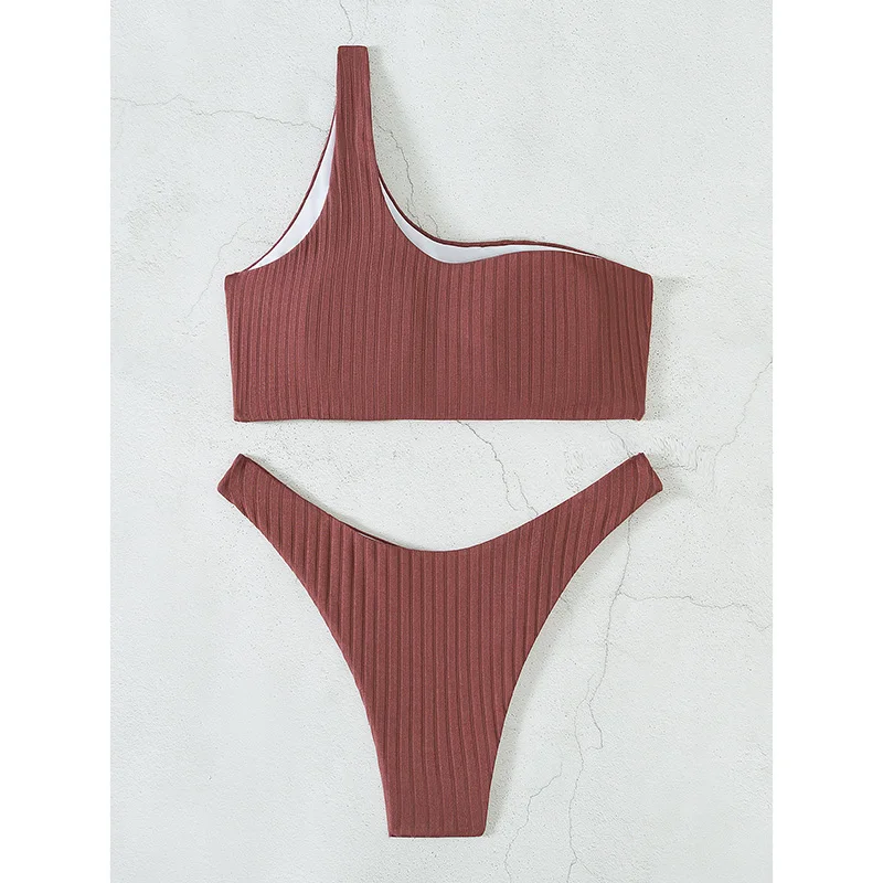 Комплект бикини INGAGA на одно плечо, женский купальник в рубчик, 2022, купальник пуш-ап, женское бикини, новые купальные костюмы с высоким вырезом, пляжная одежда