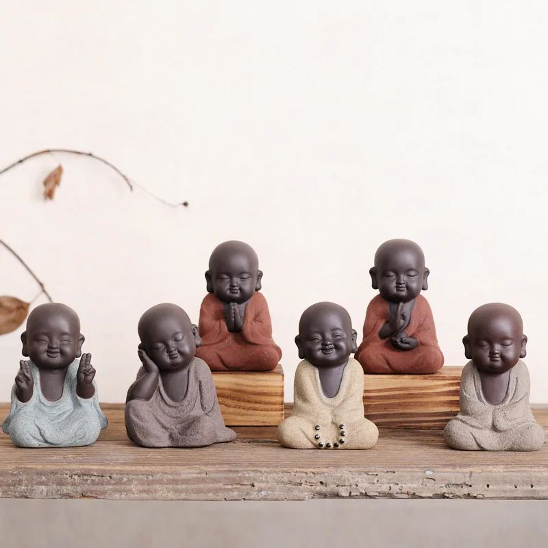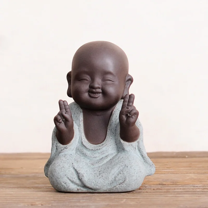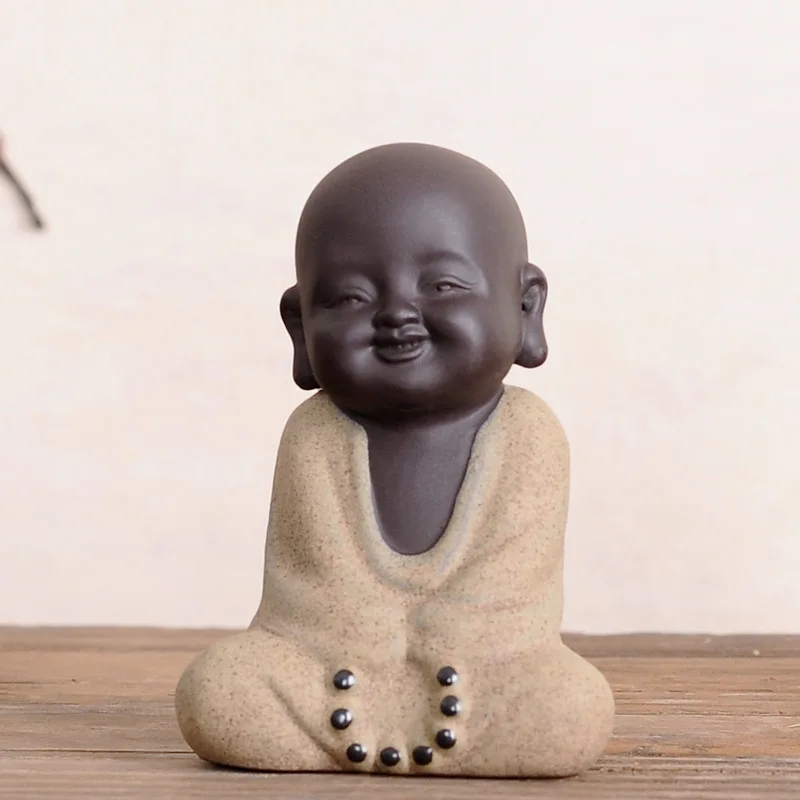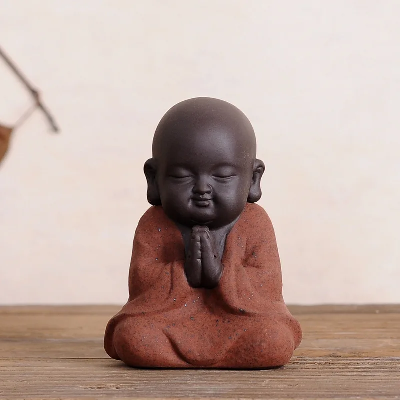 Милая маленькая фигурка монаха, фиолетовая глина, чайный питомец, сидящий ребенок, статуэтка Будды, скульптура, настольные украшения, креативный Забавный подарок