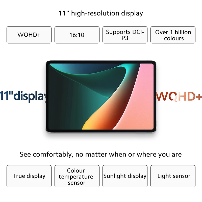 Планшетов Xiaomi Mi Pad 5, 6 ГБ, 256 ГБ, Snapdragon 860, 11 дюймов, WQHD + дисплей 120 Гц, 4 стереодинамика, 8720 мАч, Mi Tablet 5