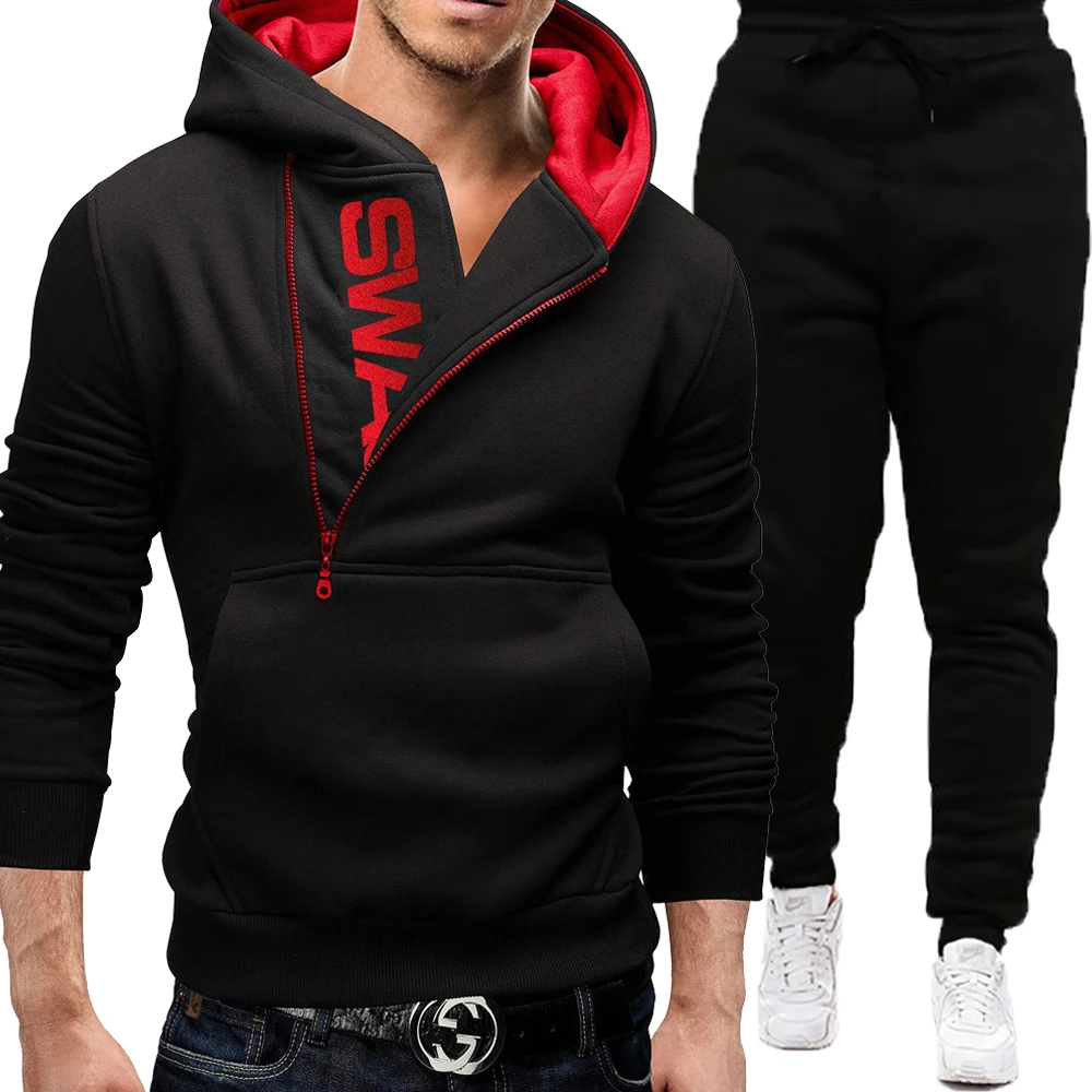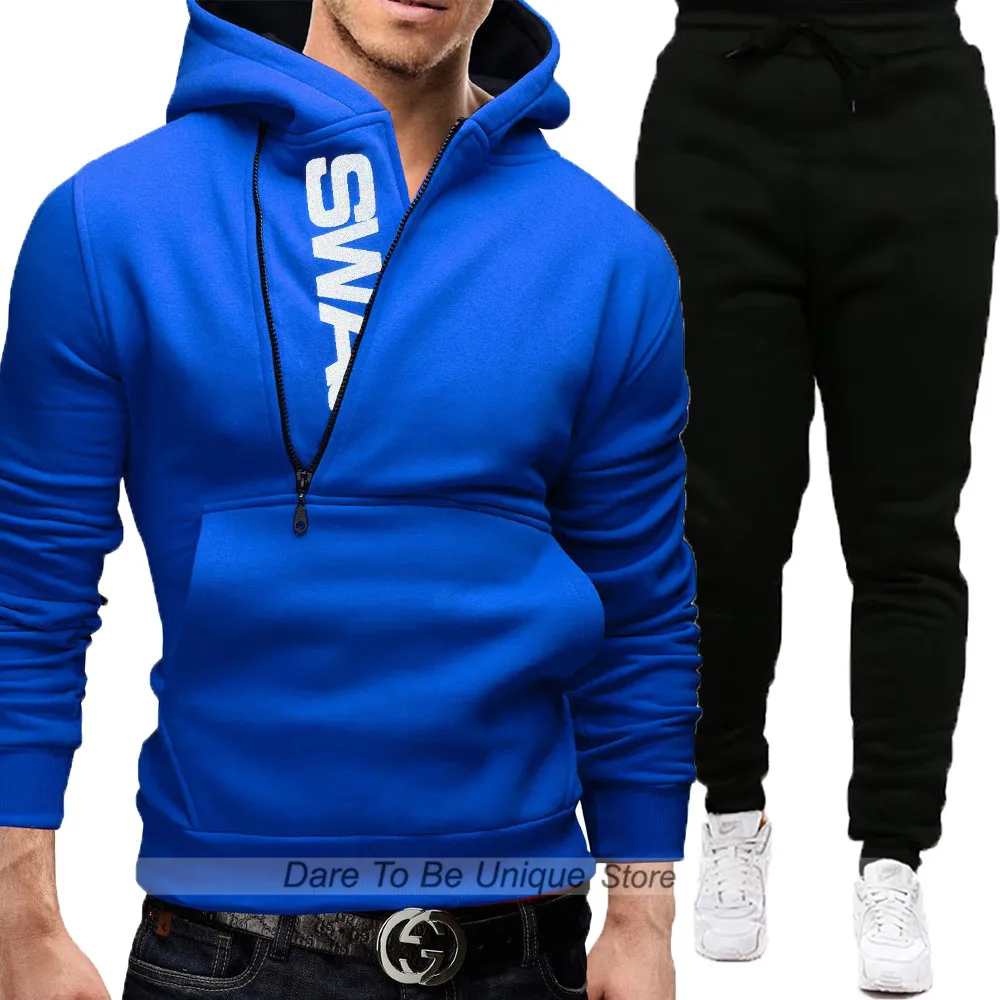 Костюм спортивный мужской из свитшота и брюк, повседневный комплект спортивной одежды на молнии, Мужской пуловер с капюшоном, толстовка, костюм из 2 предметов, зима