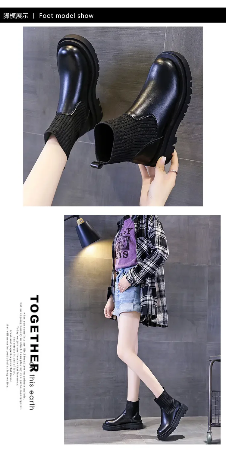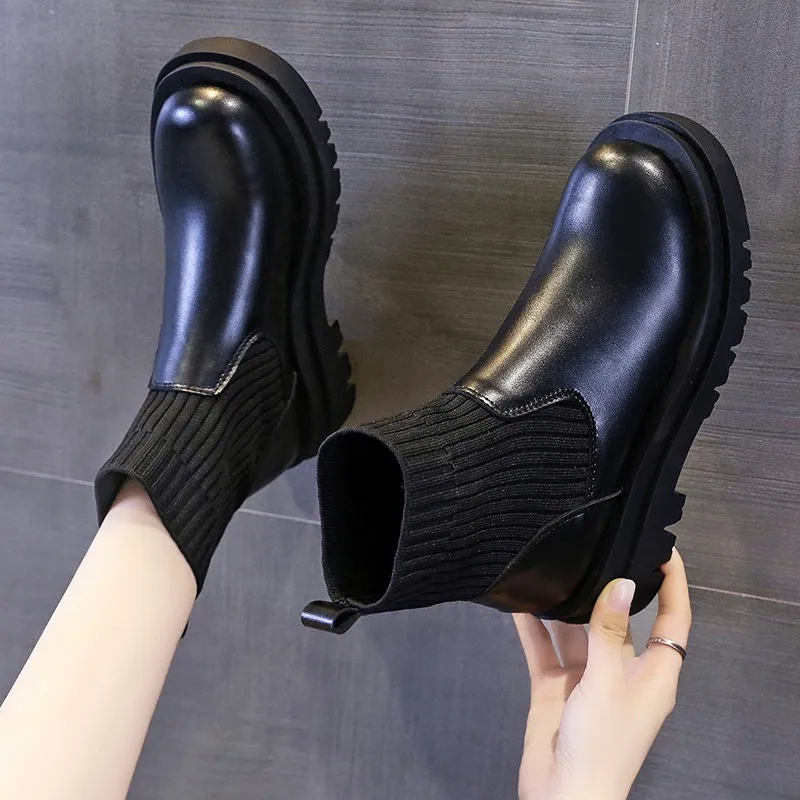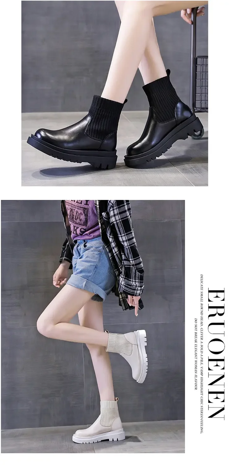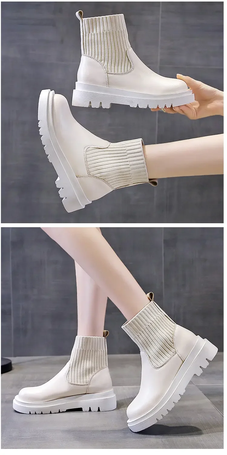 Женские ботильоны на толстой подошве, Повседневные вязаные короткие ботинки из сетчатой ткани, Осень-зима 2021