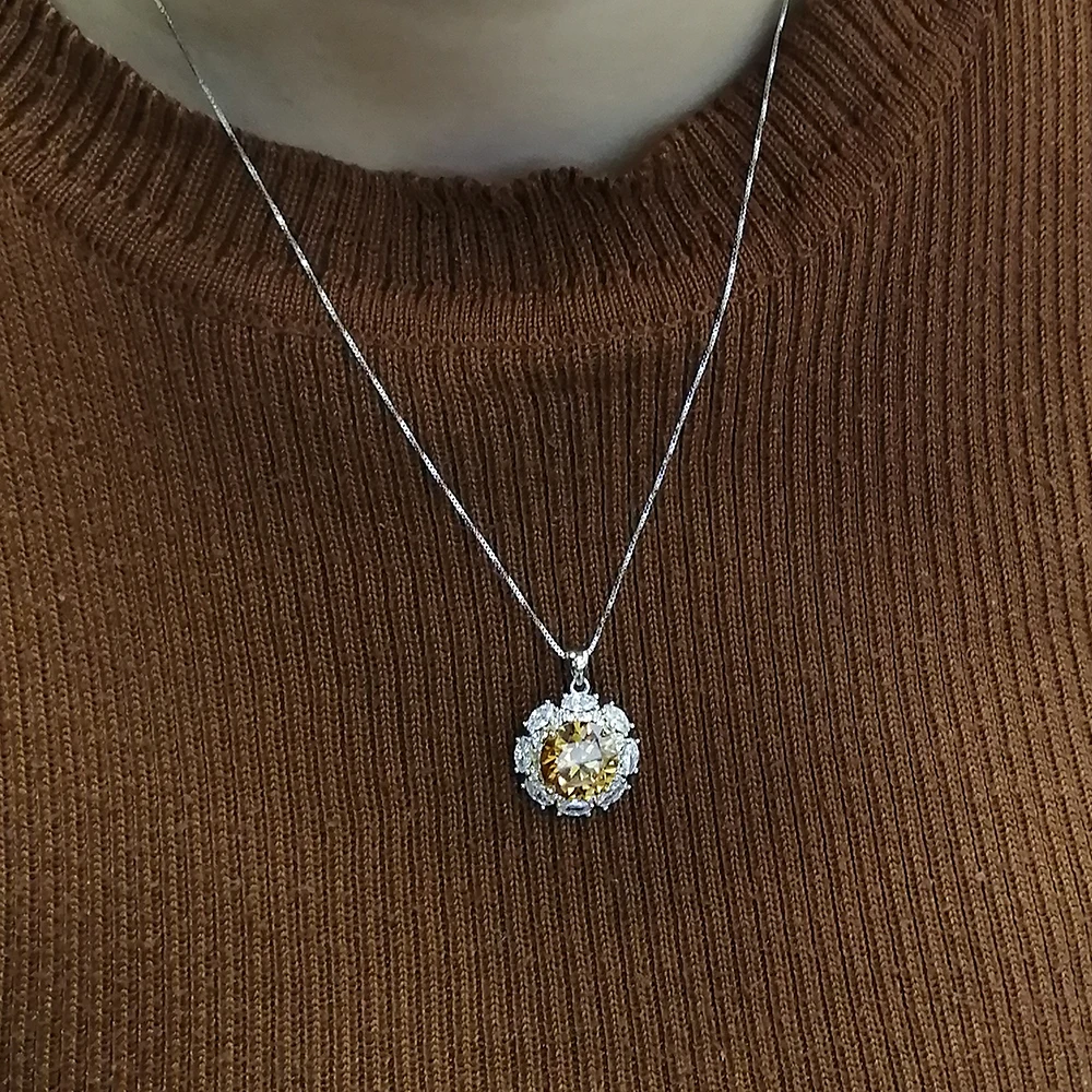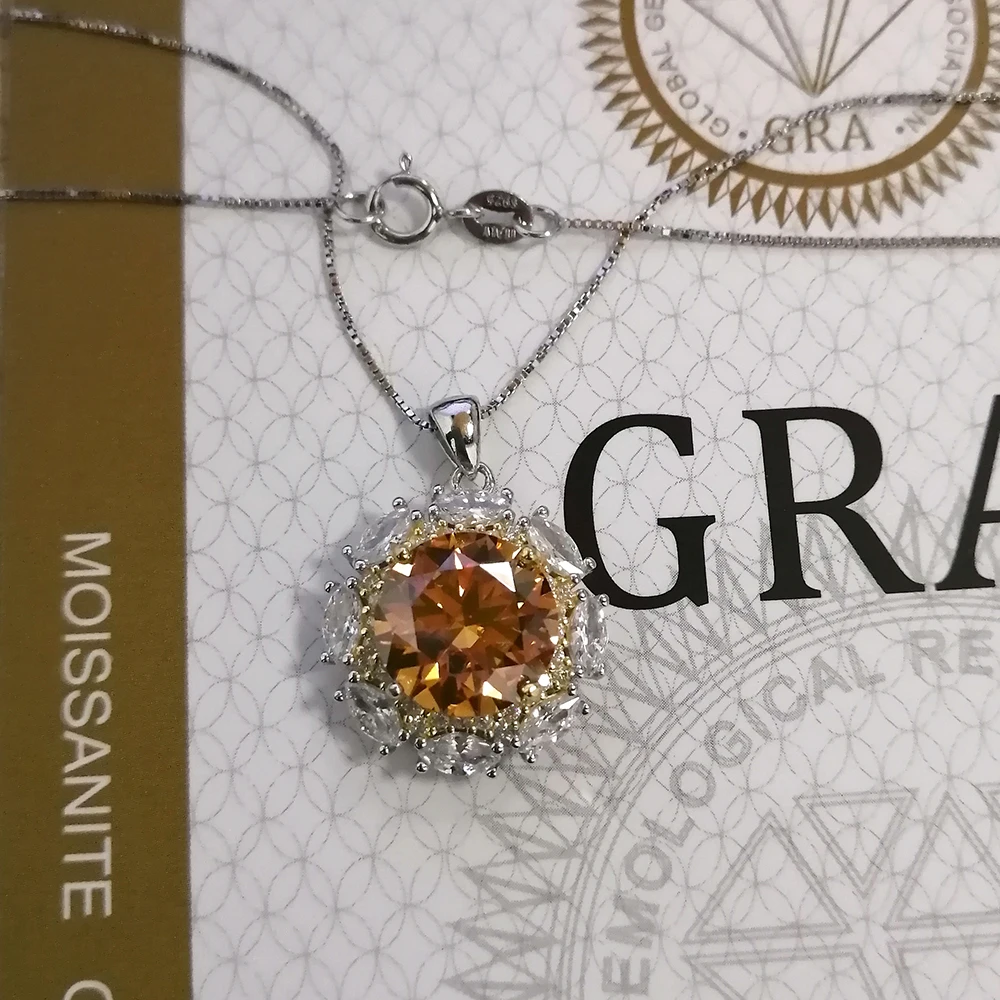 Ожерелье драгоценный камень: 5CT 11 мм желтый моиссанит (прошел испытание алмаза + GRA сертификат)
