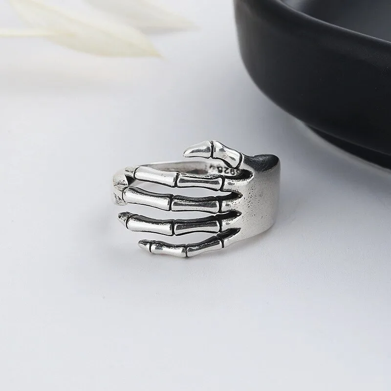 Регулируемое кольцо из стерлингового серебра 925 пробы, Трендовое винтажное креативное кольцо на палец в стиле панк-рок, скелет, ручная петля, украшения для вечеринки для женщин