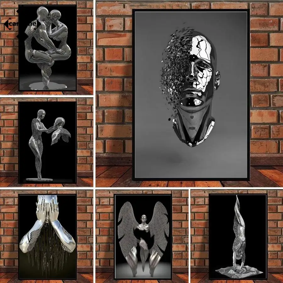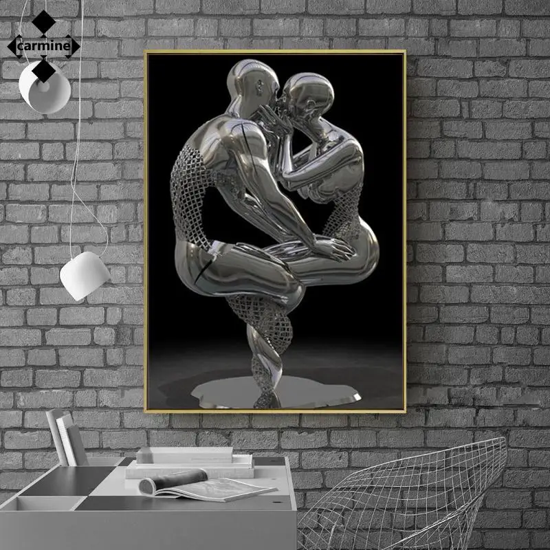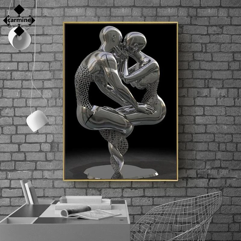 Романтическая металлическая настенная живопись влюбленных, фигурка, статуя, печатная картина, абстрактный современный стиль, Постер и печать для декора гостиной