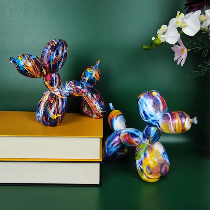 Фигурки воздушных шаров и собак, красочные граффити, домашний декор, Современная Скандинавская полимерная статуэтка животного, статуэтка, украшение для гостиной