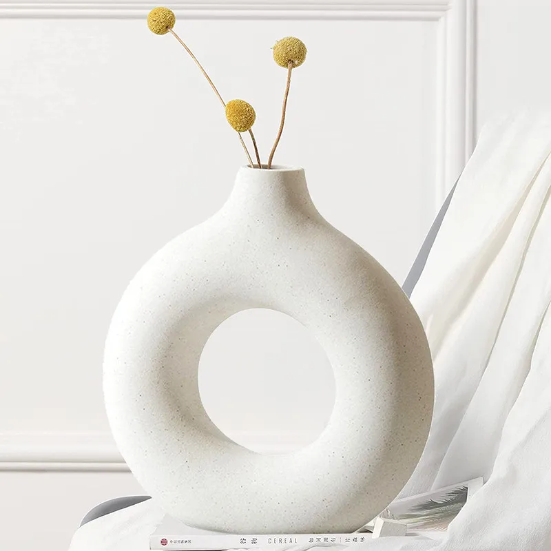 «Применимая сцена»Эта ваза в форме пончика уникальна и имеет превосходную глиняную отделку, которая дополняет украшение вашей комнаты. Также подходит для размещения в гостиной, спальне, камине и прихожей.100% КерамикаЭти вазы ручной работы, очень гладкие и имеют уникальное прикосновение. Они широко используются в качестве украшения. Налейте их сушеными цветами, травой или листьями эвкалипта, чтобы добавить современный штрих к вашей гостиной.