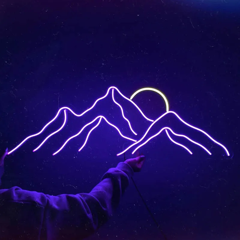 Неоновый светодиодный ночсветильник в виде гор на заказ, вывеска, домашний декор, закат, настенное украшение для спальни