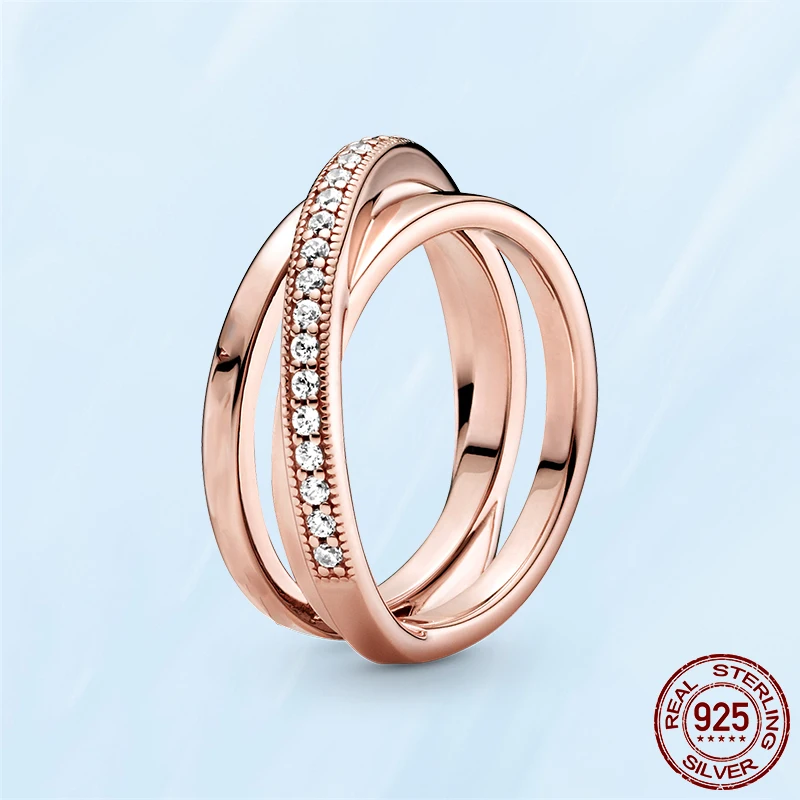 Женское кольцо с ПАВЕ, из серебра 925 пробы, с тремя кольцами