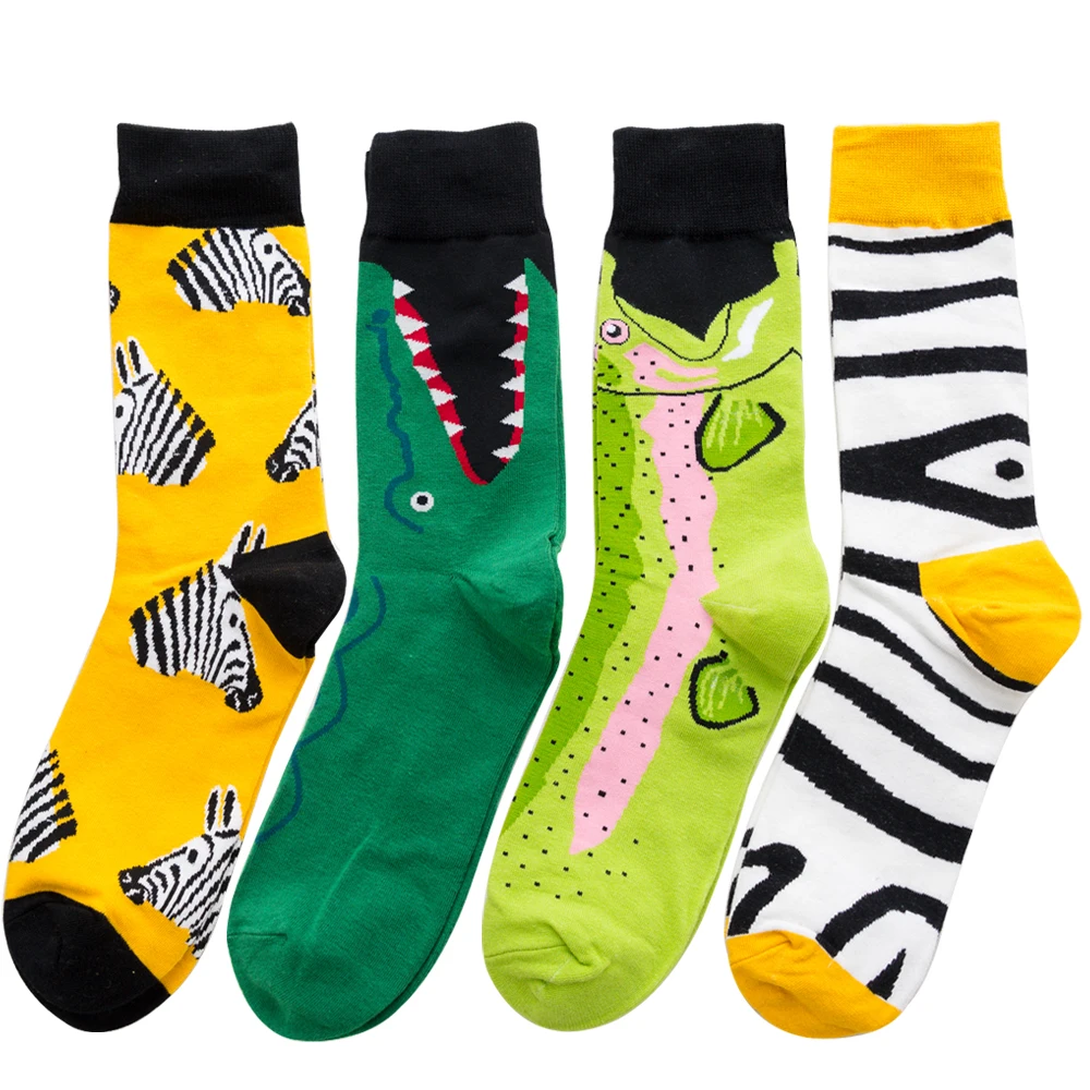 Носки мужские, разноцветные, в стиле хип-хоп, с головой зебры, акул...