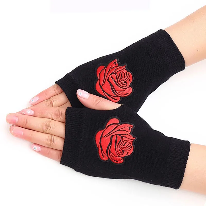 Женские перчатки Стразы с принтом розы, перчатки без пальцев для му...