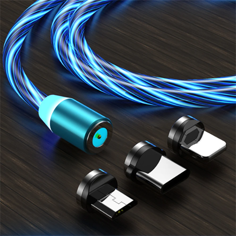 Магнитный светящийся кабель для зарядки, шнур для зарядного устройства, провод для samsung LED Micro USB Type C для Iphone 13 12