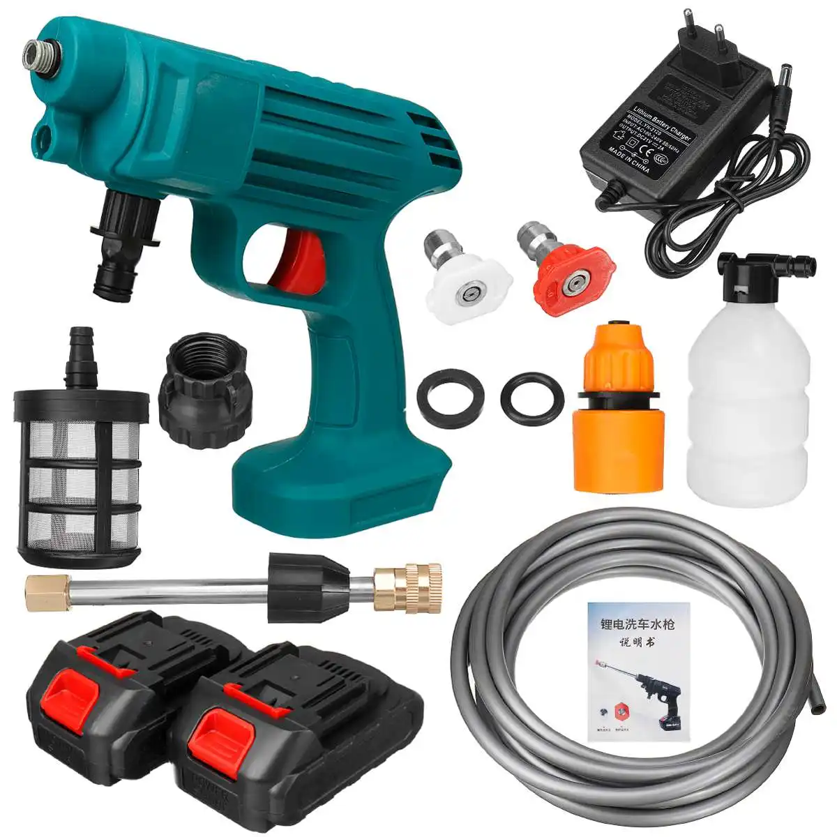 Высокое давление Беспроводная мойка Автомойка давление воды сопло очистки машина комплектСпецификация:Тип: машинный набор для мытья автомобиляМатериал: АБС + нержавеющая стальЦвет: зеленыйВыходное напряжение: 24 ВМощность: 200 ВтПиковое давление: 28 барРазмер: 43x21x7.5смВремя работы: 30 mintuteДлина выходной трубы: 5 мБатарея (опционально): 1 шт./2 шт.Характеристика:● Многофункциональный водяной пистолет может переключать тип воды по желанию, и поток воды может регулироваться постепенно от маленького до большого, вращая насадку, И вентилятор и Прямая регулировка водной линии могут быть переключены по желанию.● Портативный самовсасывающий, более быстрый и прочный, встроенный фильтр из нержавеющей стали, Высокоэффективная и глубокая фильтрация примесей в воде.● Мощный Срок службы батареи, литиевая батарея значительно продлевает срок службы машины● Его можно использовать в качестве моющего пистолета для воды, садовых оросительных инструментов.● Идеально подходит для полива сада, орошения в сельском хозяйстве, мытья автомобилей, уборки дома и т. д.● Использование: очистка автомобилей, лодок, моторных домов, подъездных дорожек, колод, велосипедов, садов, дворов, тротуаров и т. д.Предупреждение безопасности:Безопасное предупреждение об аккумуляторе(1) не разбирайте, не открывайте и не разрезайте аккумулятор.(2) не допускается короткое замыкание аккумуляторной батареи. Не помещайте батареи в коробку или ящики по желанию, чтобы избежать короткого замыкания между ними или другими металлическими предметами.(3) запрещено подвергать батареи воздействию источников тепла или пламени. Избегайте хранения под прямыми солнечными лучами.(4) Не удаляйте батареи или батареи из оригинальной упаковки перед использованием.(5) запрещается организовывать батарею механическим воздействием.Посылка включает в себя:Шаблон 1 (стандартная версия):1х автомойка1x аккумулятор1x зарядное устройство1x полюс из нержавеющей стали1 чайник из пены1 х 5 м водяной шланг1x соединитель водопровода2x насадка1x фильтр2x резиновые кольца1 x Руководство пользователяРисунок 2 (стандартная версия):1х автомойка2x аккумулятор1x зарядное устройство1x полюс из нержавеющей стали1 чайник из пены1 х 5 м водяной шланг1x соединитель водопровода1x разъем2x насадка1x фильтр2x резиновые кольца1 x Руководство пользователяПримечание:1. Мы предоставляем четкие изображения, измерения, где это возможно. Пожалуйста, проверьте как можно больше, чтобы убедиться, что товар тот, который вам нужен.2. Замеры сделаны вручную, поэтому возможны незначительные отклонения в размерах (на 1-3 см), так как измерения были выполнены вручную.(1 дюйм = 2,54 см)3. Цвет фактического товара может немного отличаться от изображения из-за различий в экране компьютера, спасибо за понимание.