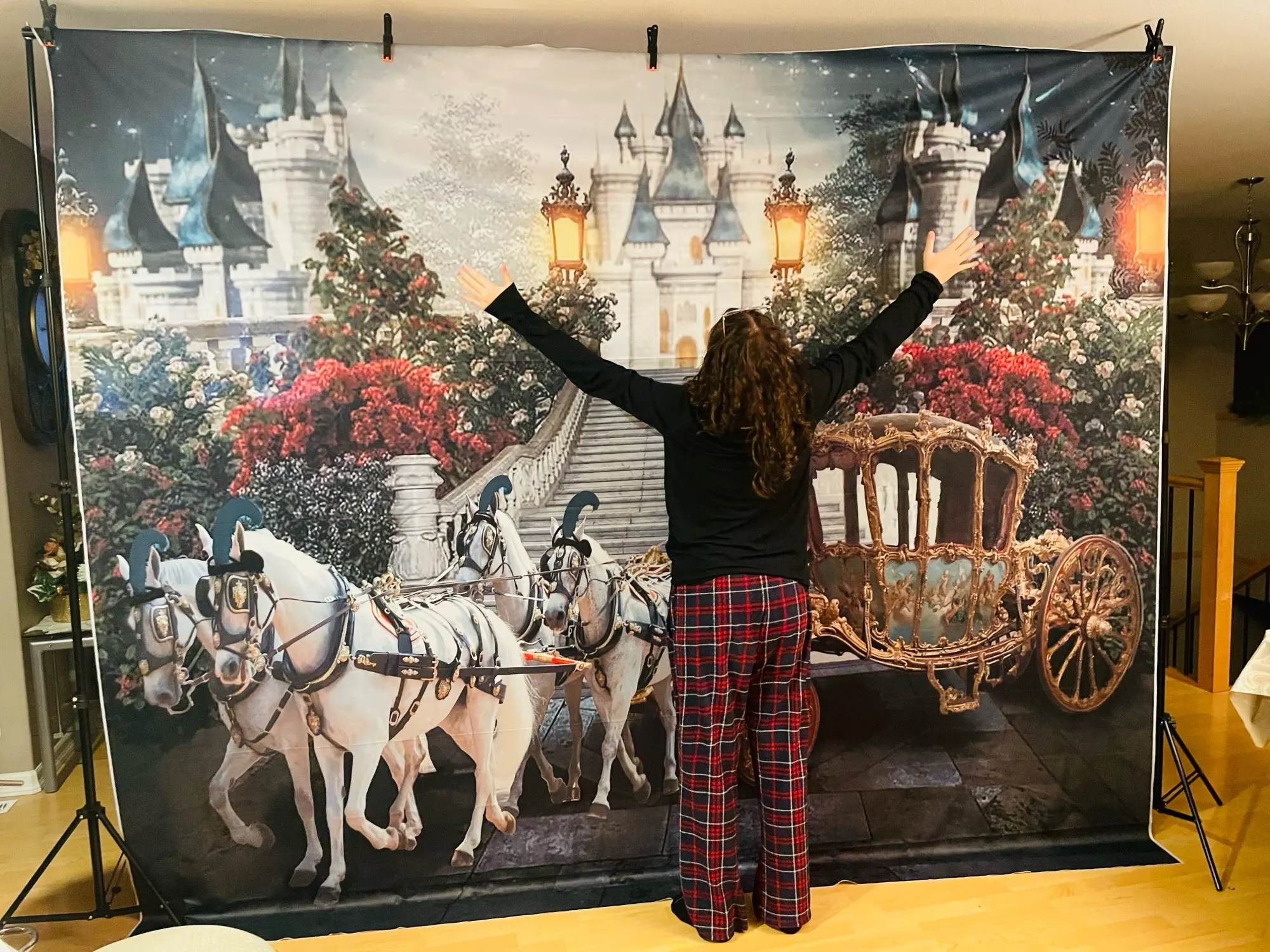 Фон для фотосъемки с изображением дворца, колокольчика и чудовища 7...