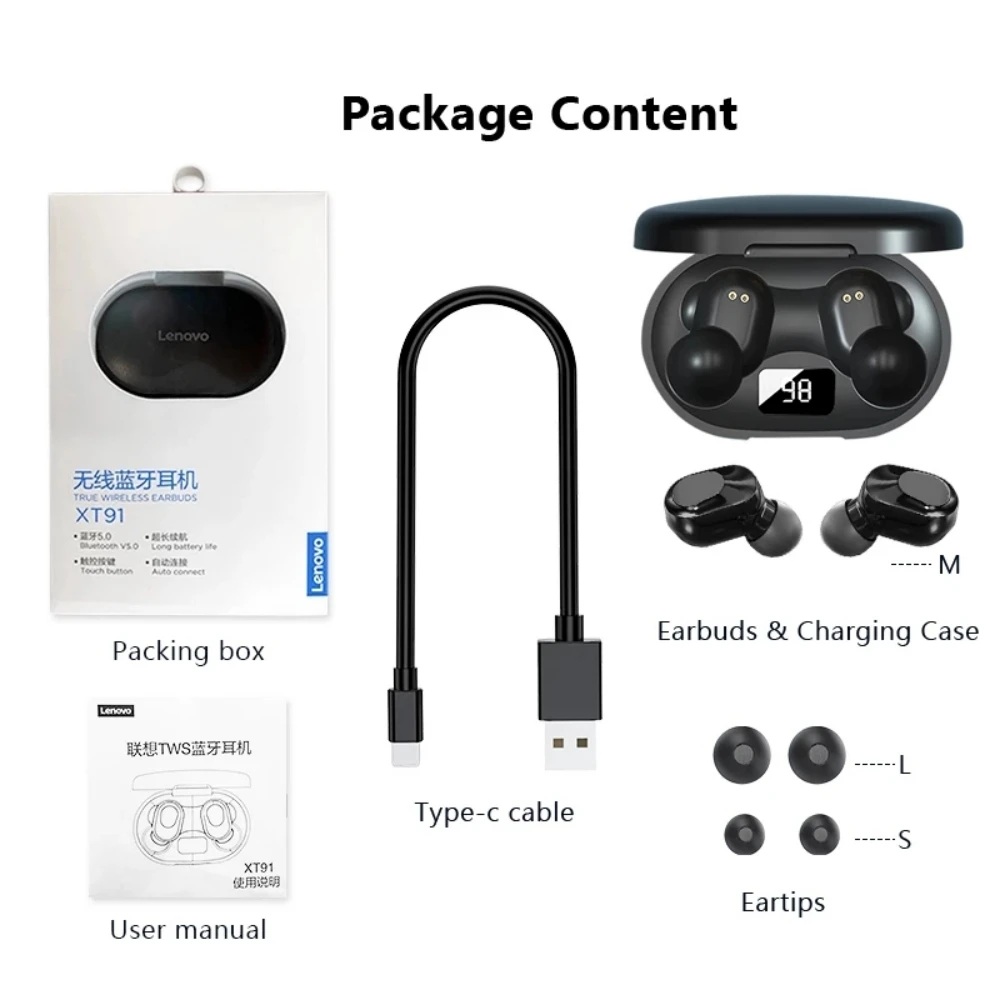 Беспроводные Bluetooth-наушники Lenovo XT91, игровая стереогарнитура TWS, наушники с микрофоном и сенсорным управлением, водонепроницаемые наушники