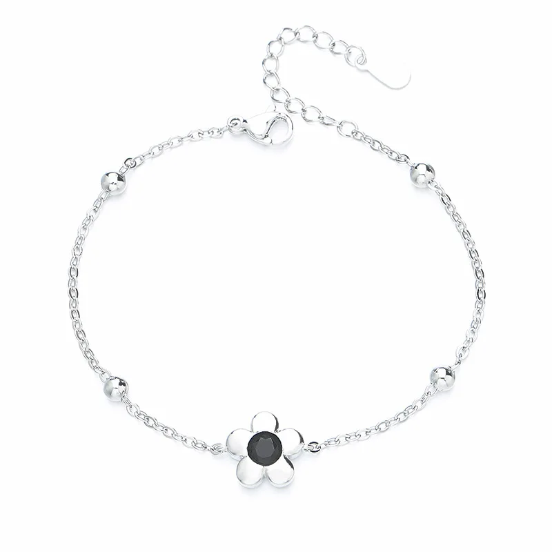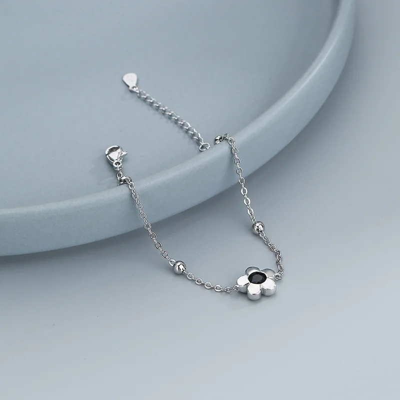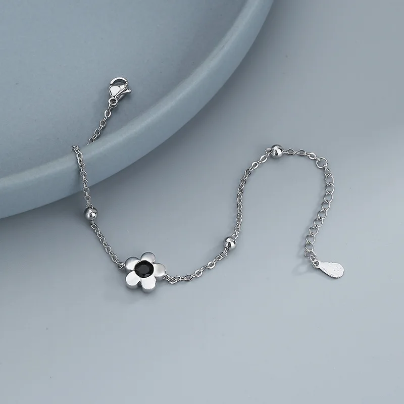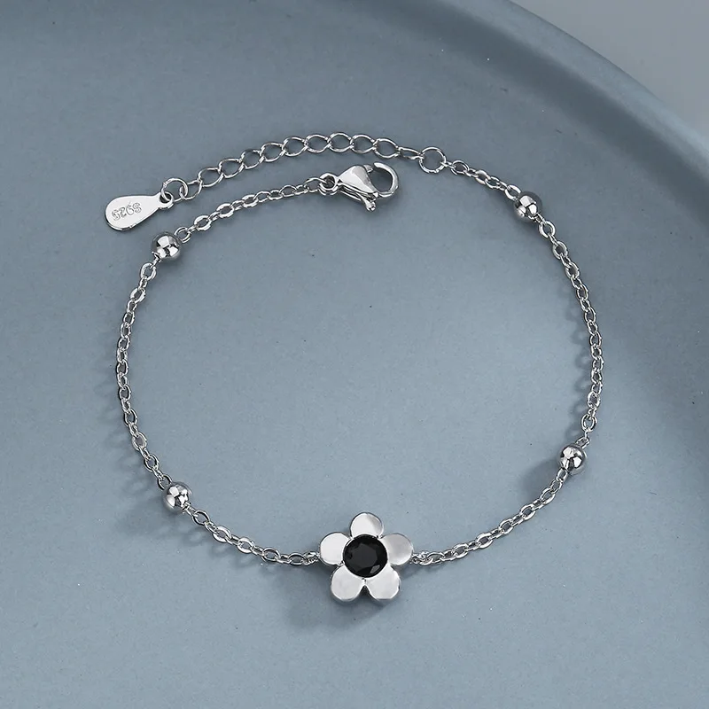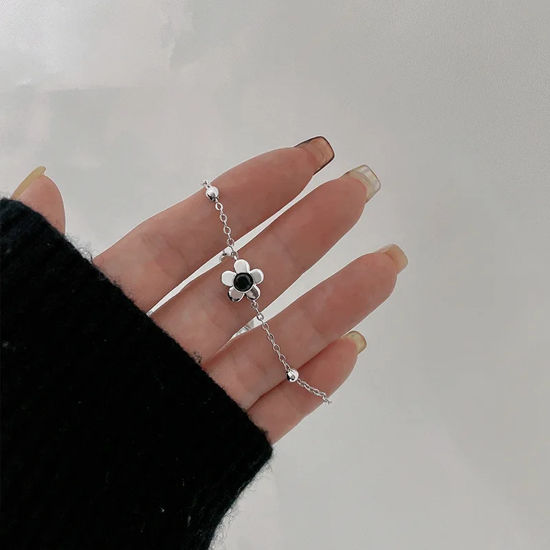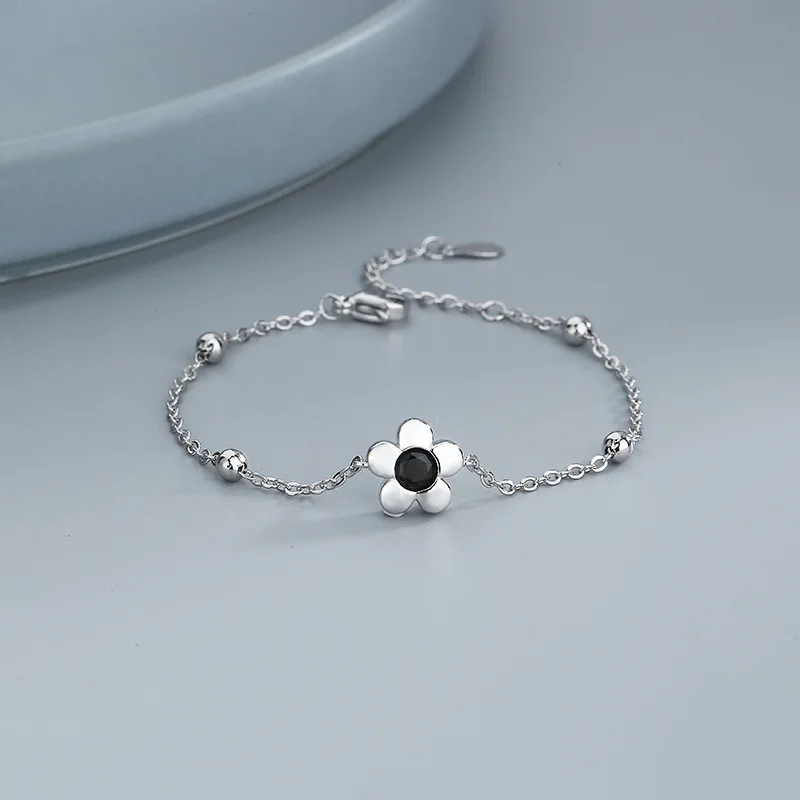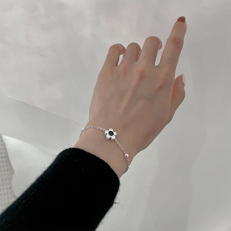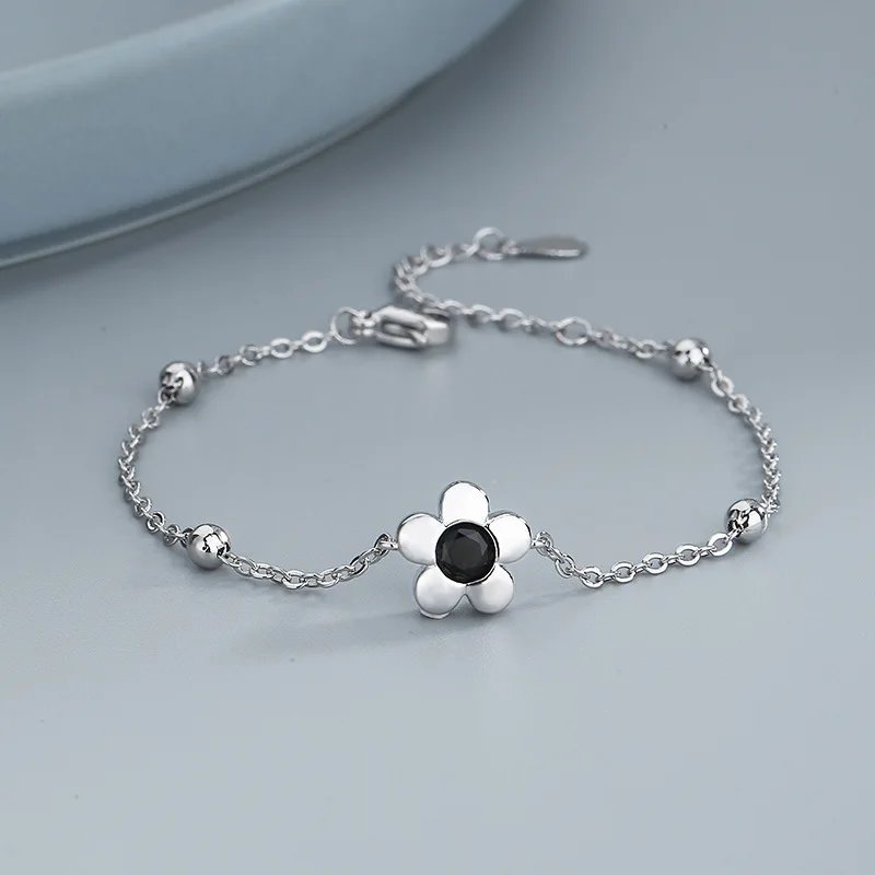 Женский браслет с цветком MEYRROYU, черный браслет из стерлингового серебра с пятью лепестками, ювелирное изделие в Корейском стиле, подарок на день рождения