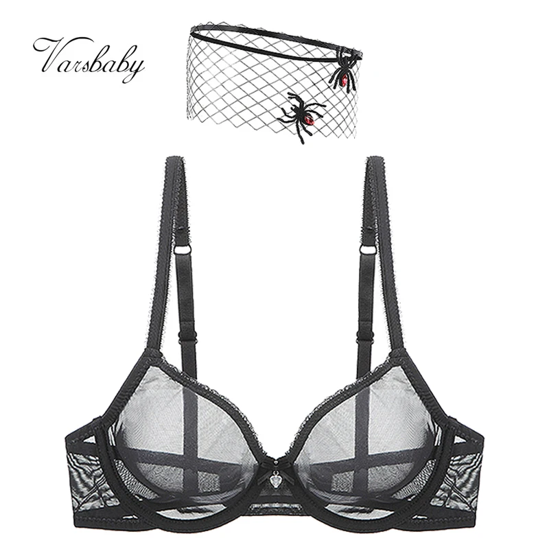 Varsbabyсексуальное дамское нижнее белье ультра-тонкий прозрачный мягкий бюстгальтер без подкладки с чашечками + Сетчатая Маска Для Глаз с пауком, 2 шт.партия