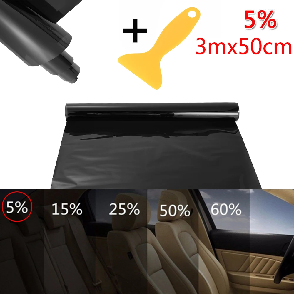 1 шт. 100x50 см 5% VLT профессиональная темная Дымчатая черная пленка для окна автомобиля НЕОБРАБОТАННАЯ Солнцезащитная наклейка для стекла автомобильные аксессуары