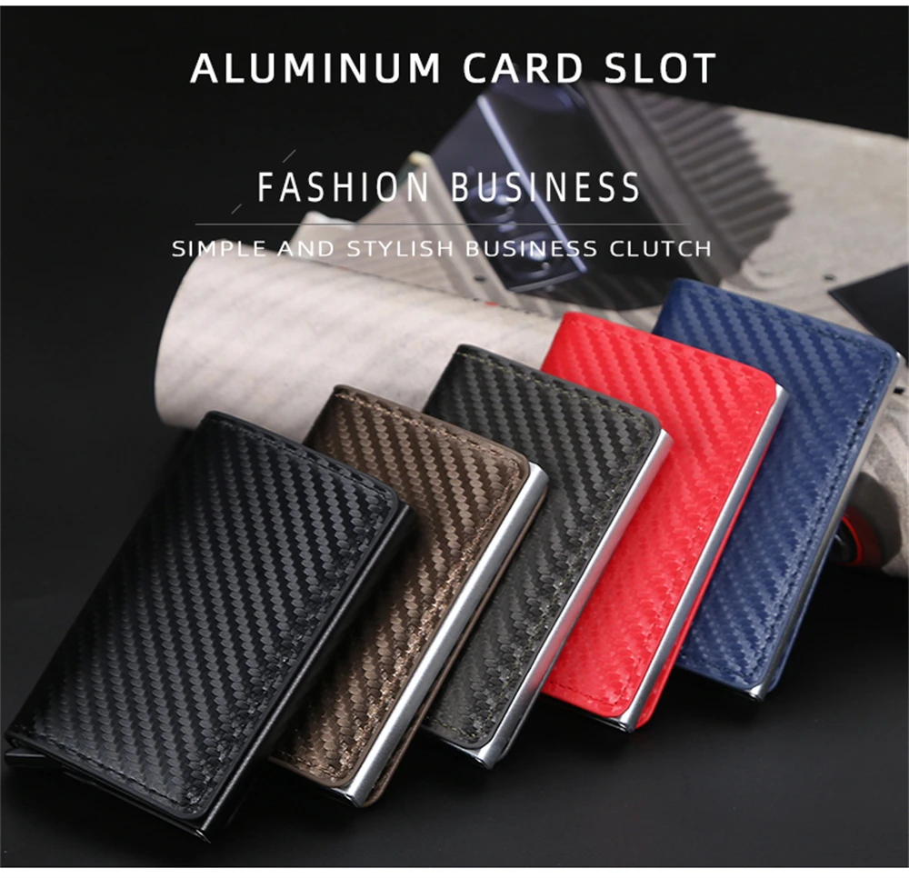 Мужской держатель для кредитных карт из углеродного волокна с рчид-блокировкой, кожаный держатель для карт, роскошный защитный кошелек для женщин и мужчин