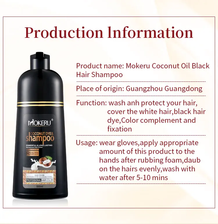 Mokeru кокосовое масло экстракт натуральный Перманентный краситель для волос шампунь быстрое легкое использование краска для волос шампунь для женщин и мужчин