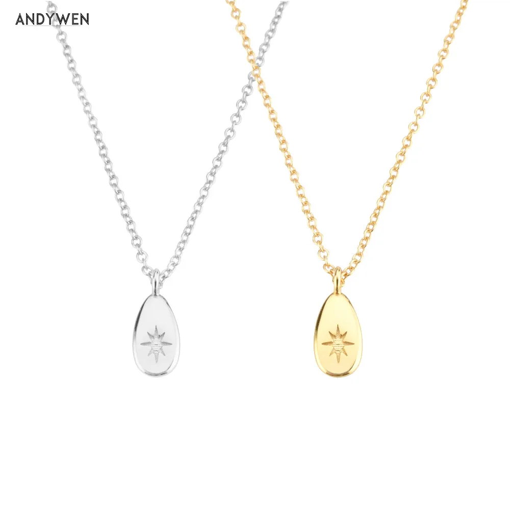 Подвеска ANDYWEN из серебра 925 пробы с золотой звездой и кубическим цирконием, маленькое женское ожерелье из искусственной кожи 2021, свадебные украшения, подарок