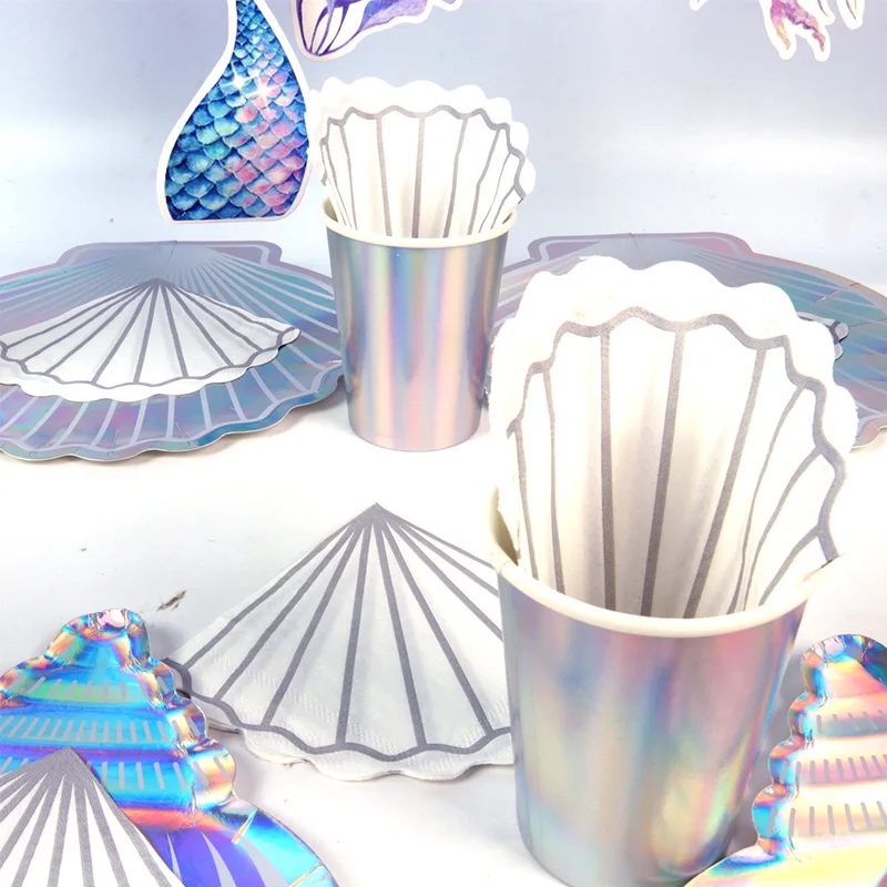 Красочная одноразовая посуда в виде ракушек для вечеринки в стиле русалки, Пляжная посуда для морской вечеринки, маленькая Русалочка для девочек, украшение для 1-го дня рождения