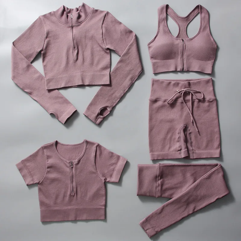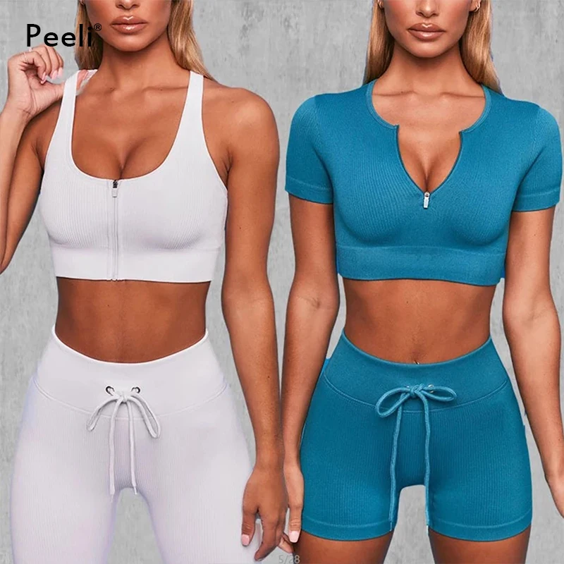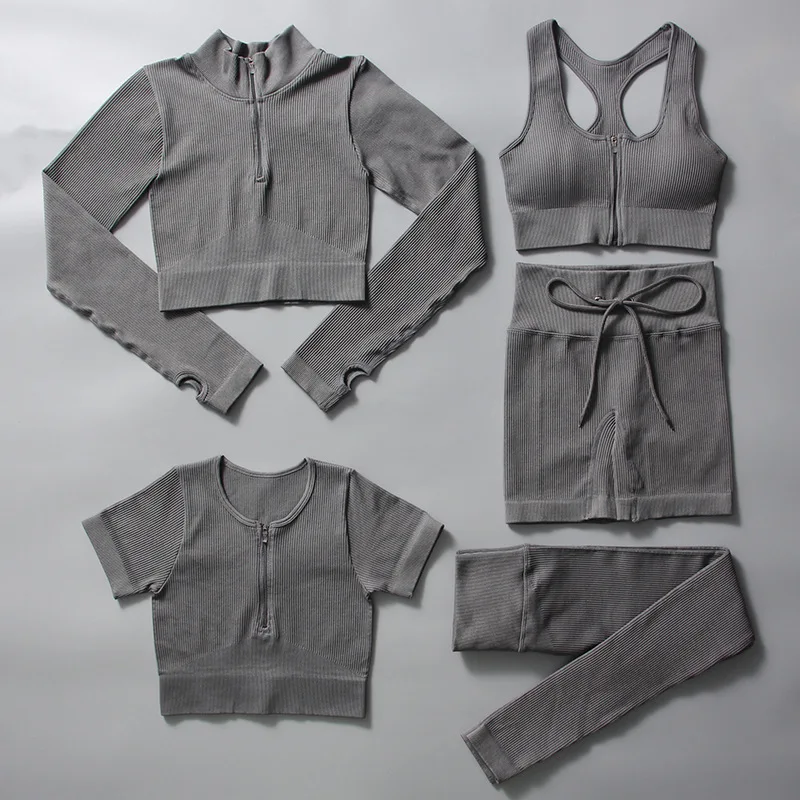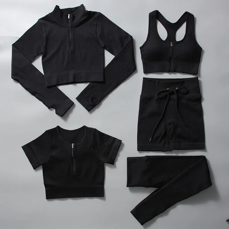 Бесшовный комплект для йоги, одежда для тренажерного зала, топ на молнии с длинным рукавом, леггинсы с высокой талией, Женский комплект, тренировочный костюм, спортивный костюм
