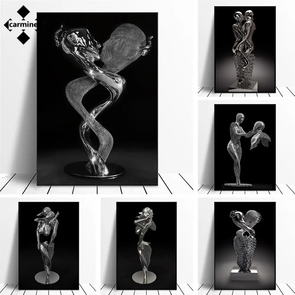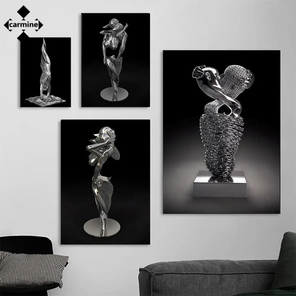 Абстрактная Серебряная скульптура, холст, живопись, современная настенная фотография, модная Минималистичная печать, картина для домашнего декора