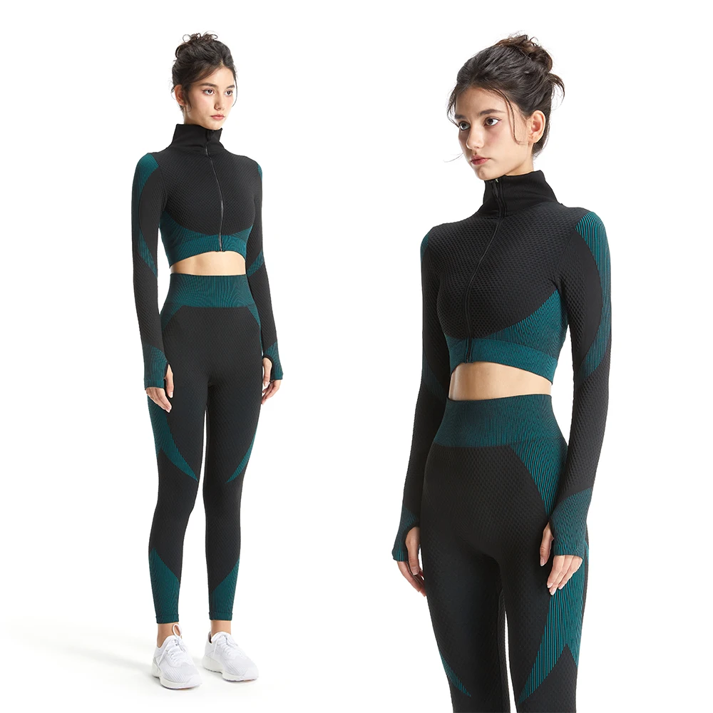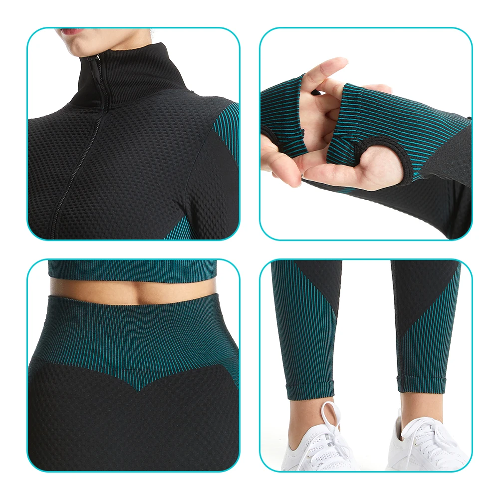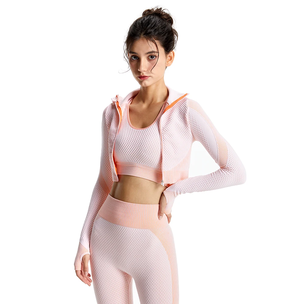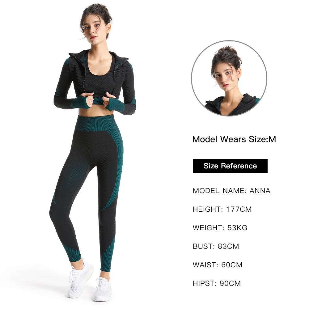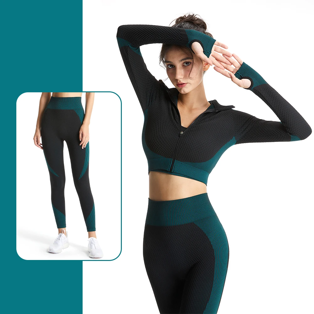 Бесшовный комплект JALIVANFIT из 3 предметов для йоги, женский спортивный костюм, леггинсы с высокой талией, спортивная одежда для спортзала, укороченный топ с длинным рукавом, спортивные костюмы