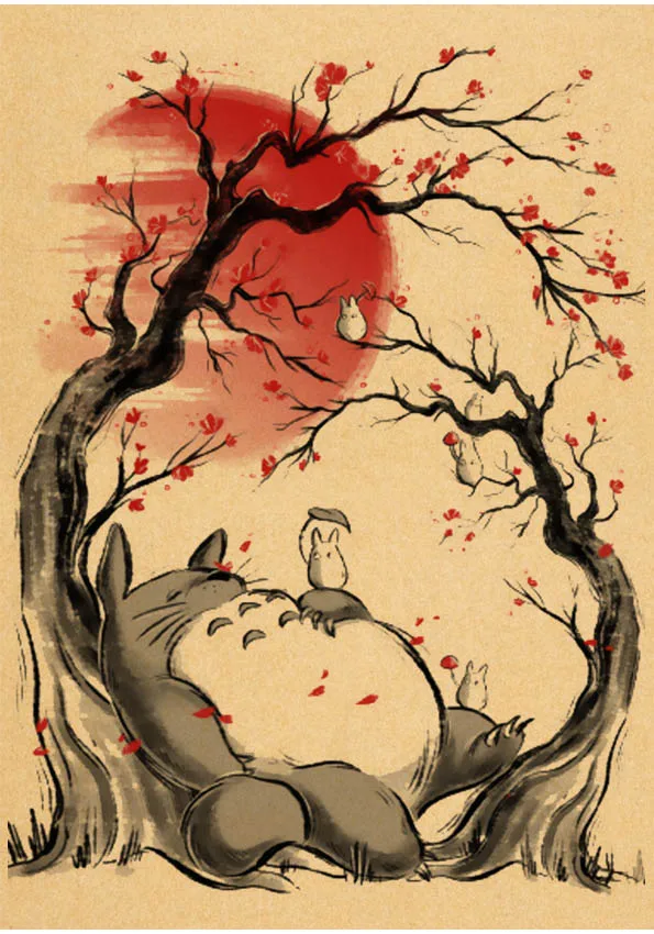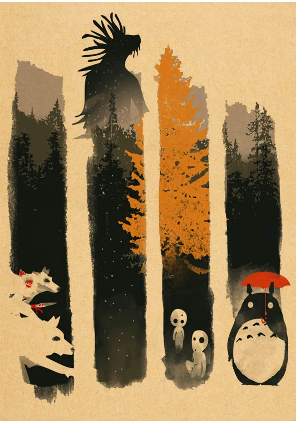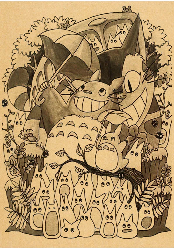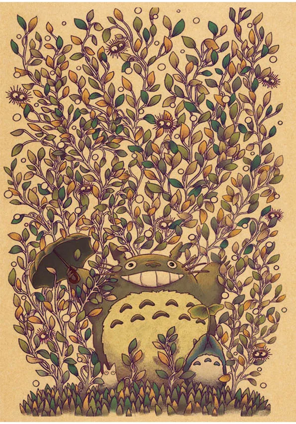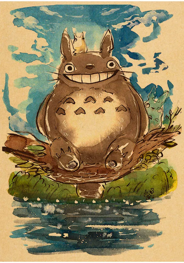 Японский мастер Miyazaki аниме Мой сосед Тоторо Ретро акварель художественный плакат с персонажами из мультфильмов стена для детской комнаты из крафт-бумаги настенная наклейка