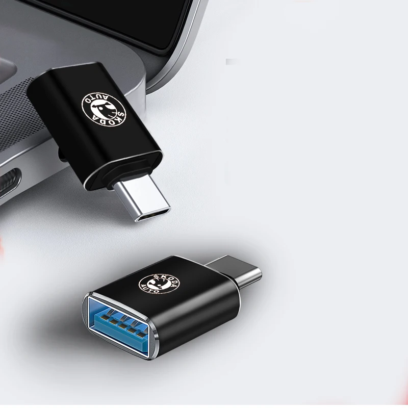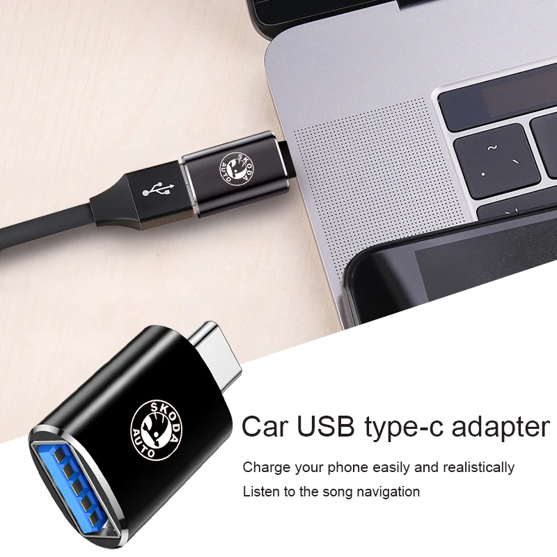 Металлический конвертер с эмблемой автомобиля 1 шт., переходник с Type C на USB OTG для Skoda rapid superb 3 fabia karoq 2015 octovia 2 2010