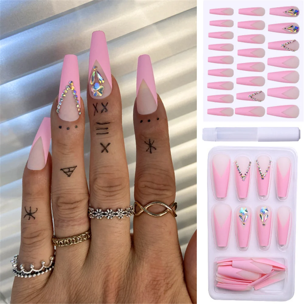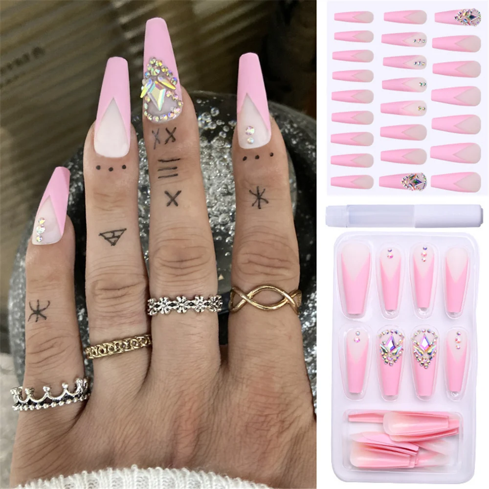 24 шт. накладные ногти розовый v-образный дизайн французский длинны...