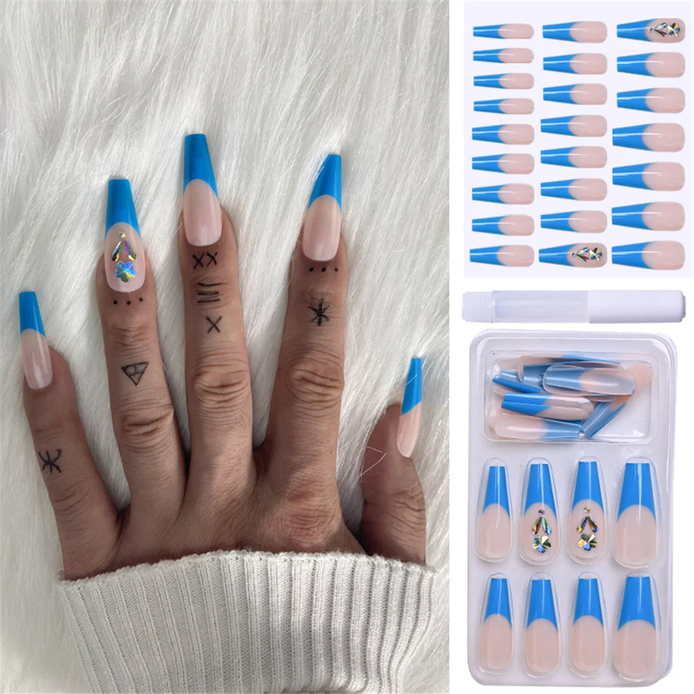 24 шт. накладные ногти небесно-голубые блестящие накладные ногти с ...