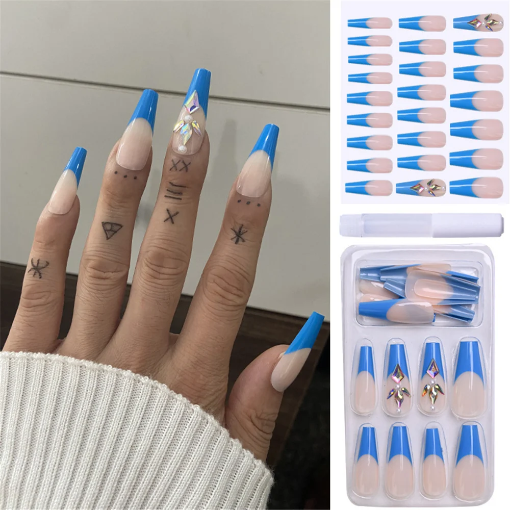 24 шт. блестящие съемные накладные ногти Длинные накладные ногти ба...