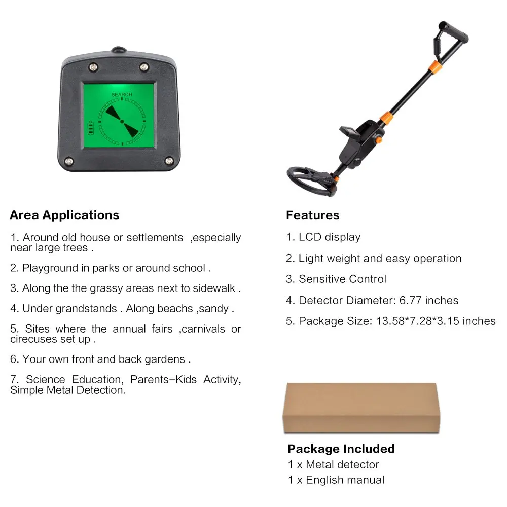 Исследуйте металлические предметы, похороненные в земле. Он широко используется для проверки безопасности, охоты за сокровищами на открытом воздухе, металлической инспекции и так далее.