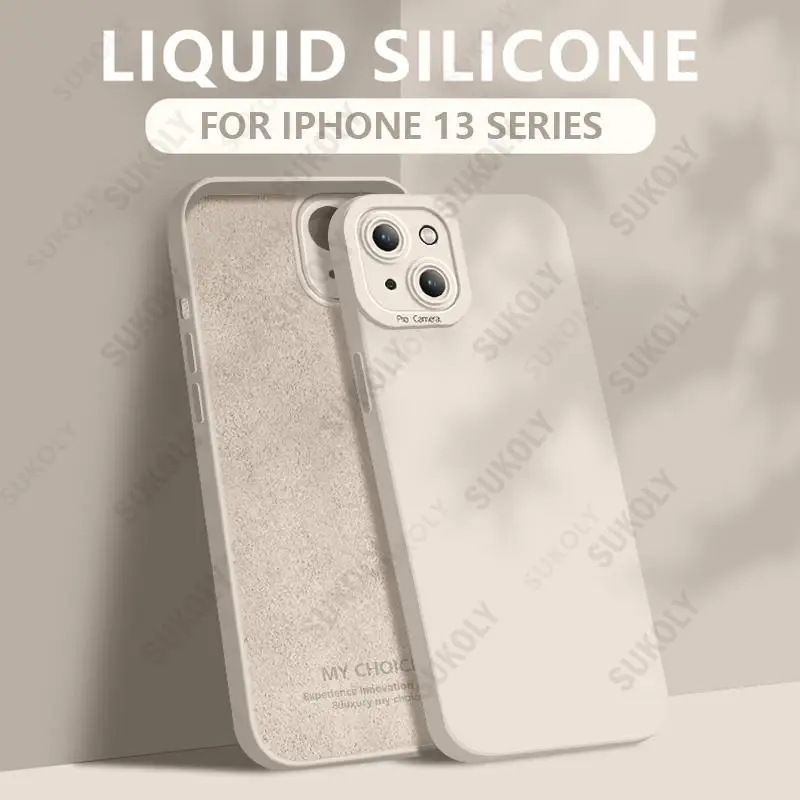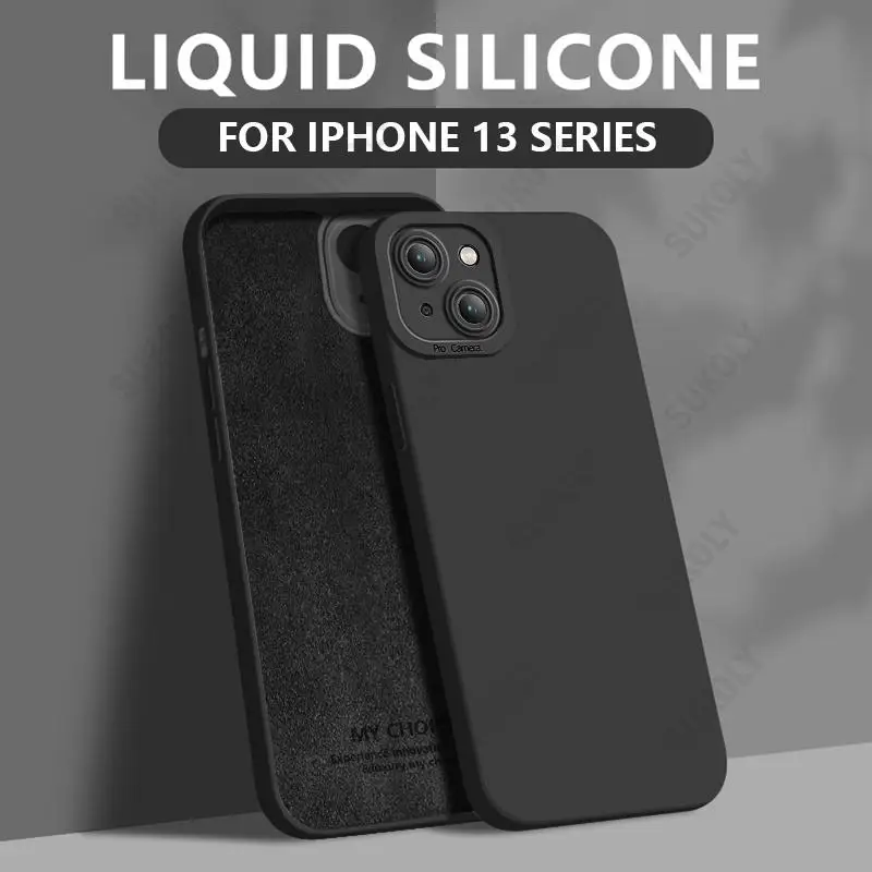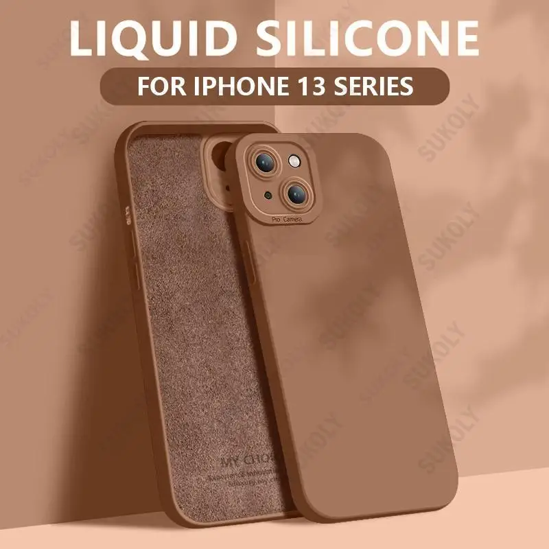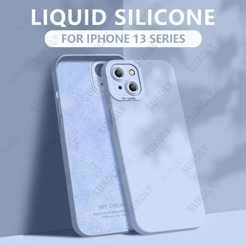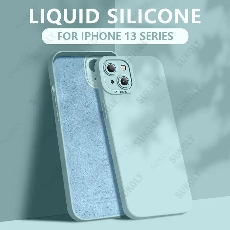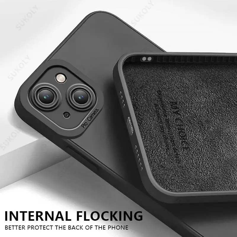Оригинальный мягкий чехол из жидкого силикона для iPhone 13, 12, 11Pro Max, XS, XR, X, 8, 7 Plus, однотонный защитный ультратонкий чехол с Флокированным объективом