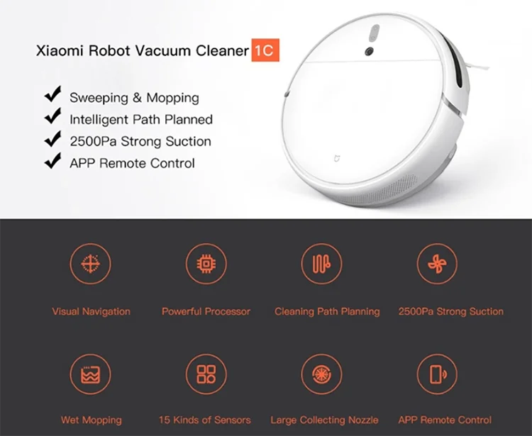 Робот-пылесос Xiaomi 1C визуальная навигация умный резервуар для во...