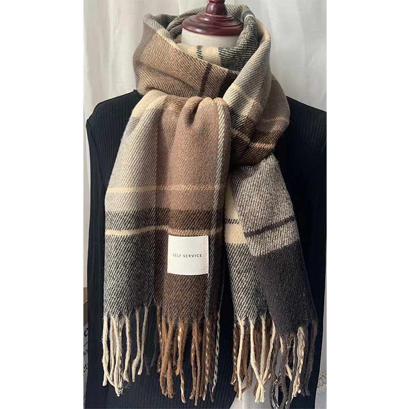 Новый кашемировый шарф, Женская шаль, утепленный клетчатый шарф для...