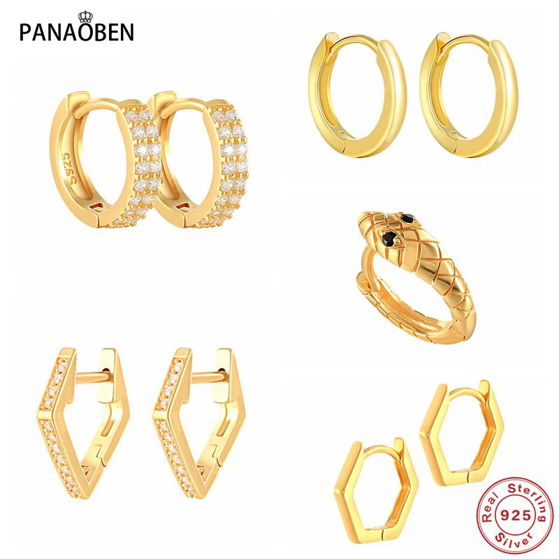 Серьги-кольца женские из серебра 925 пробы, золотистого цвета