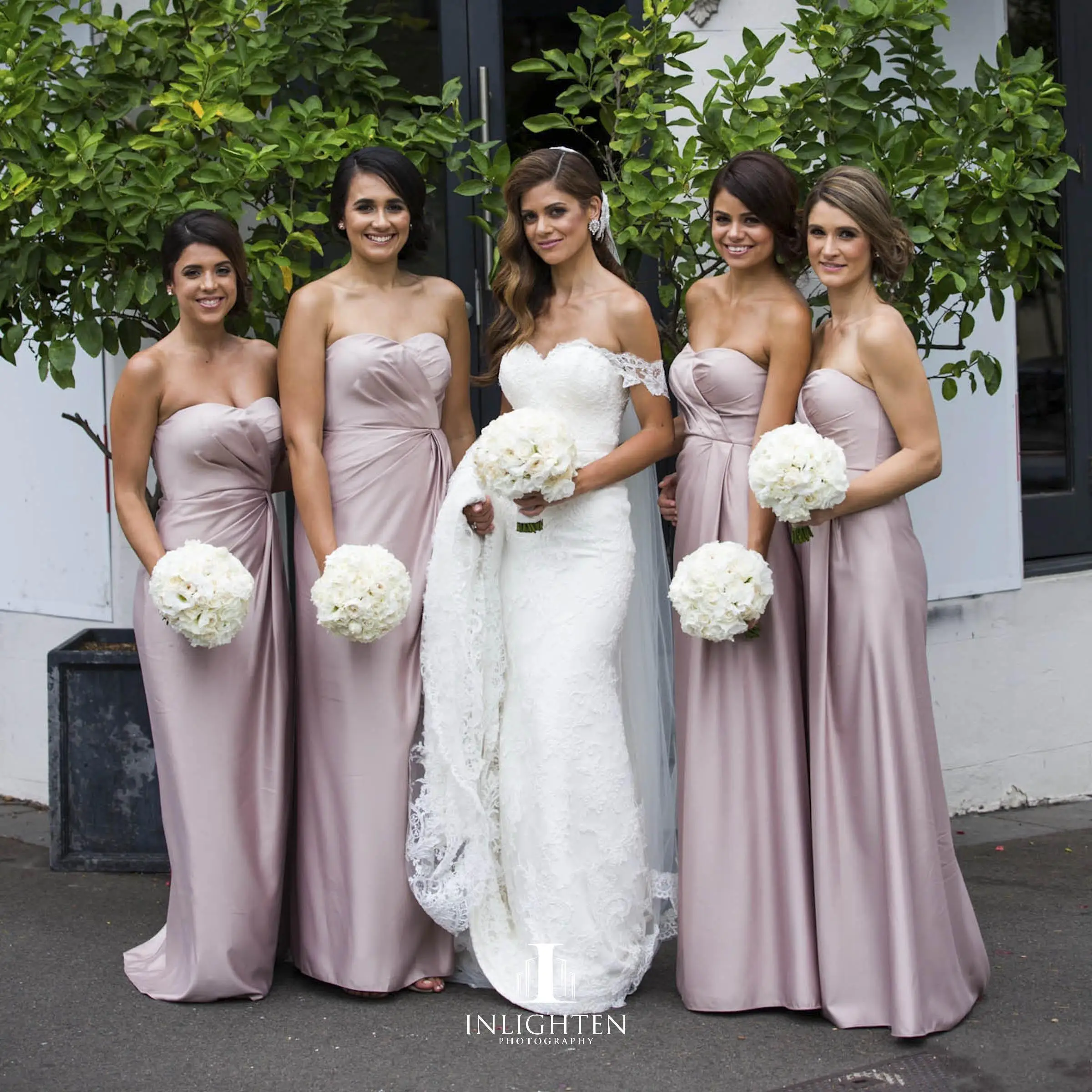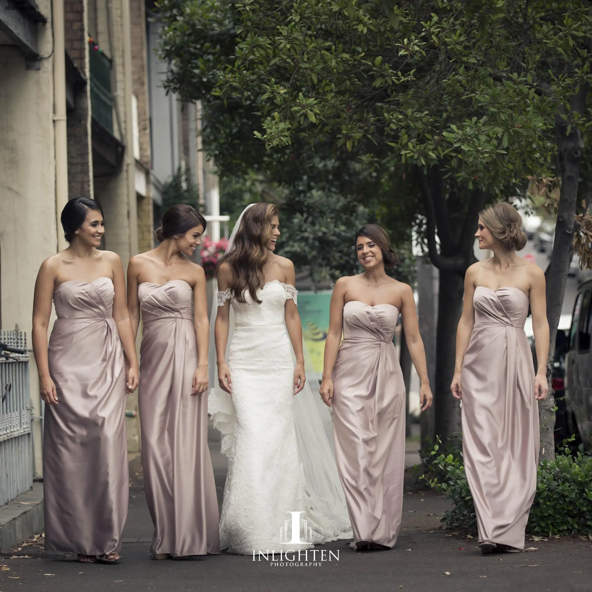 Женское длинное платье подружки невесты, телесное розовое платье-Ру...