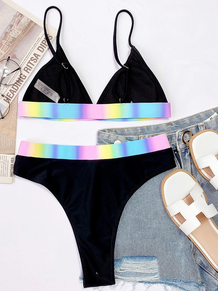 Женский бикини, однотонный купальник с V-образным вырезом и высокой талией